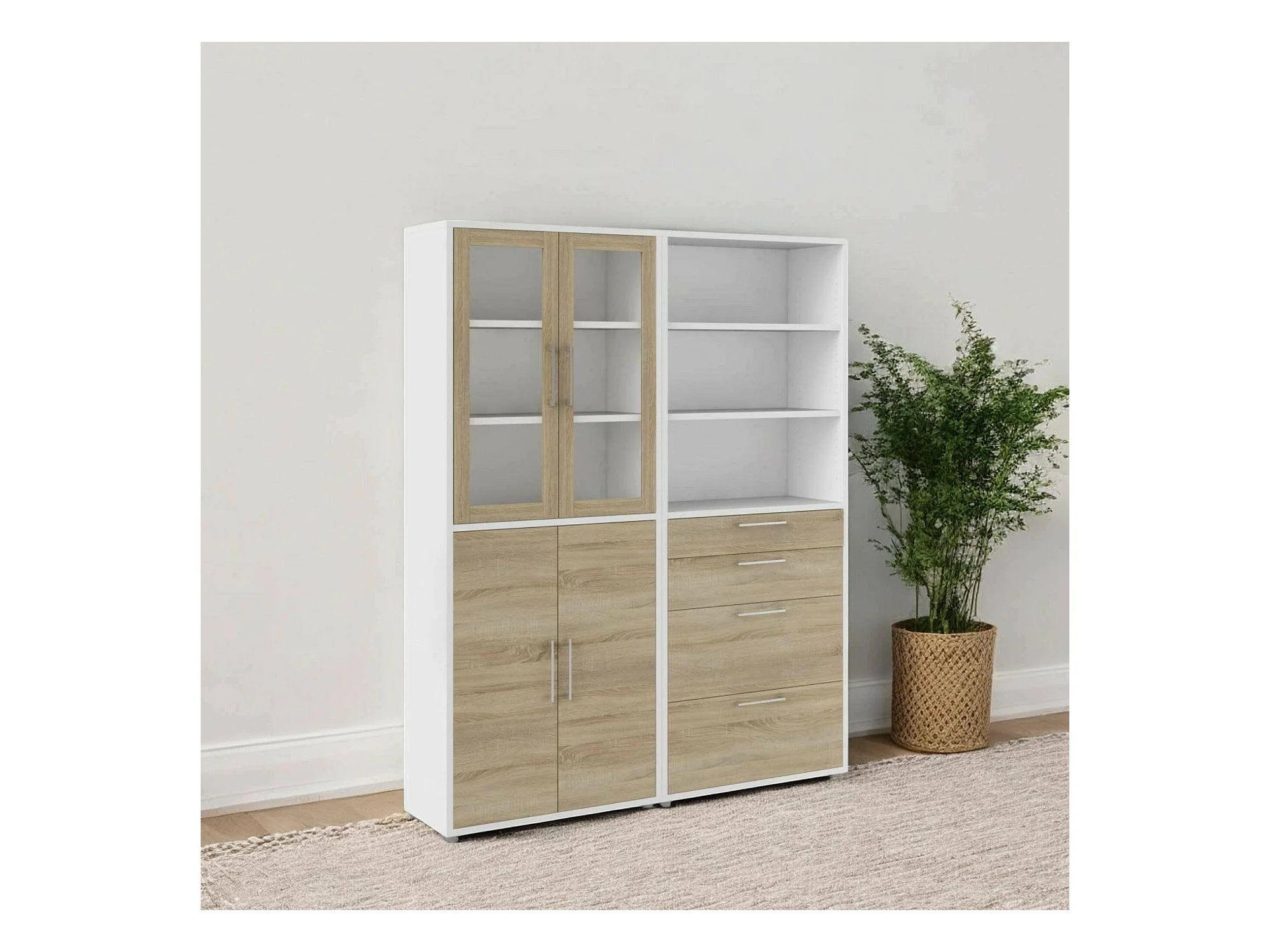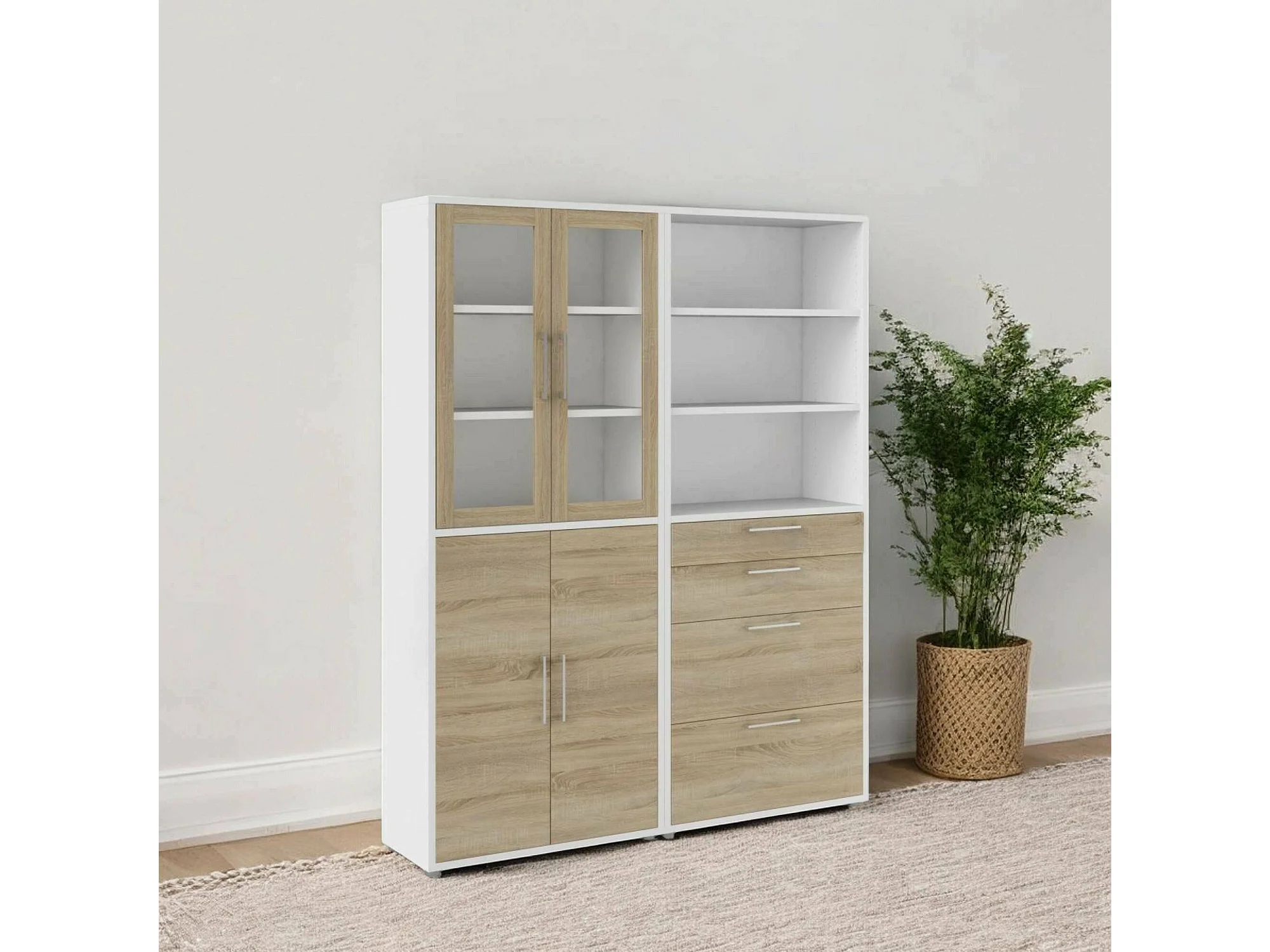 Buffet Acceglio, Buffet du salon, Commode de salon, Garde-manger de cuisine, 267x40 h222 cm, Blanc et chêne