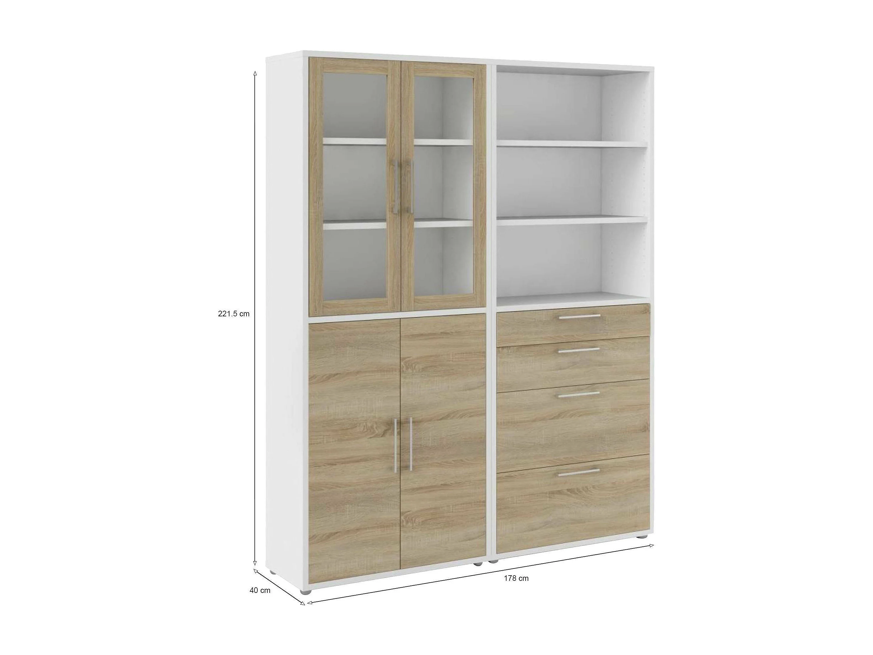 Buffet Embabane, Buffet du salon, Commode de salon, Garde-manger de cuisine, 178x40 h222 cm, Blanc et chêne