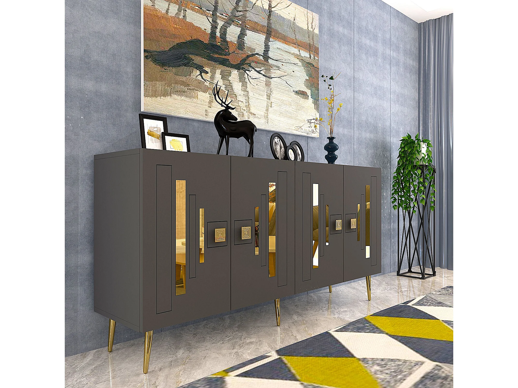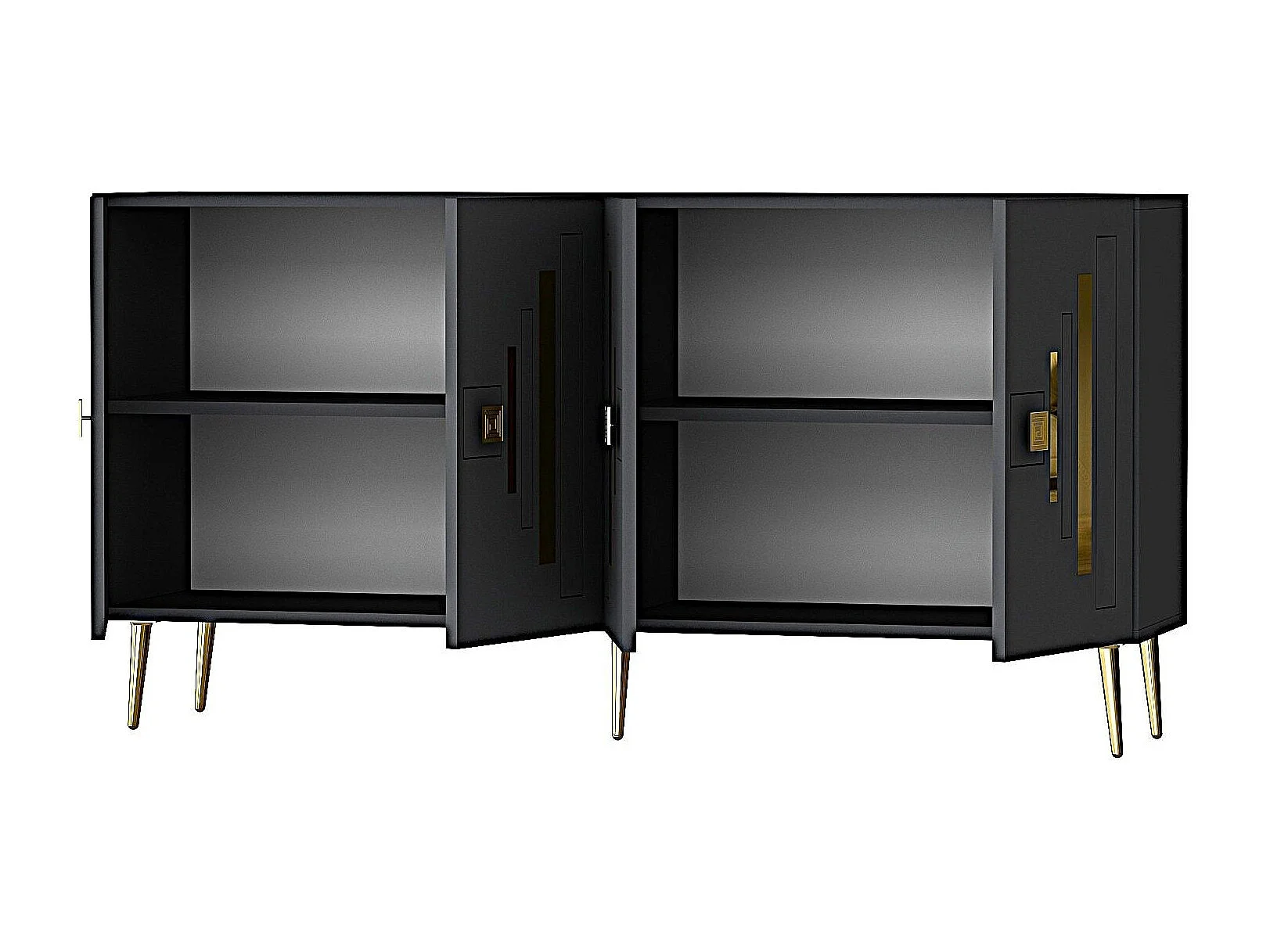 Buffet en aggloméré mélaminé – 150 cm x 75 cm x 35 cm – Anthracite et or