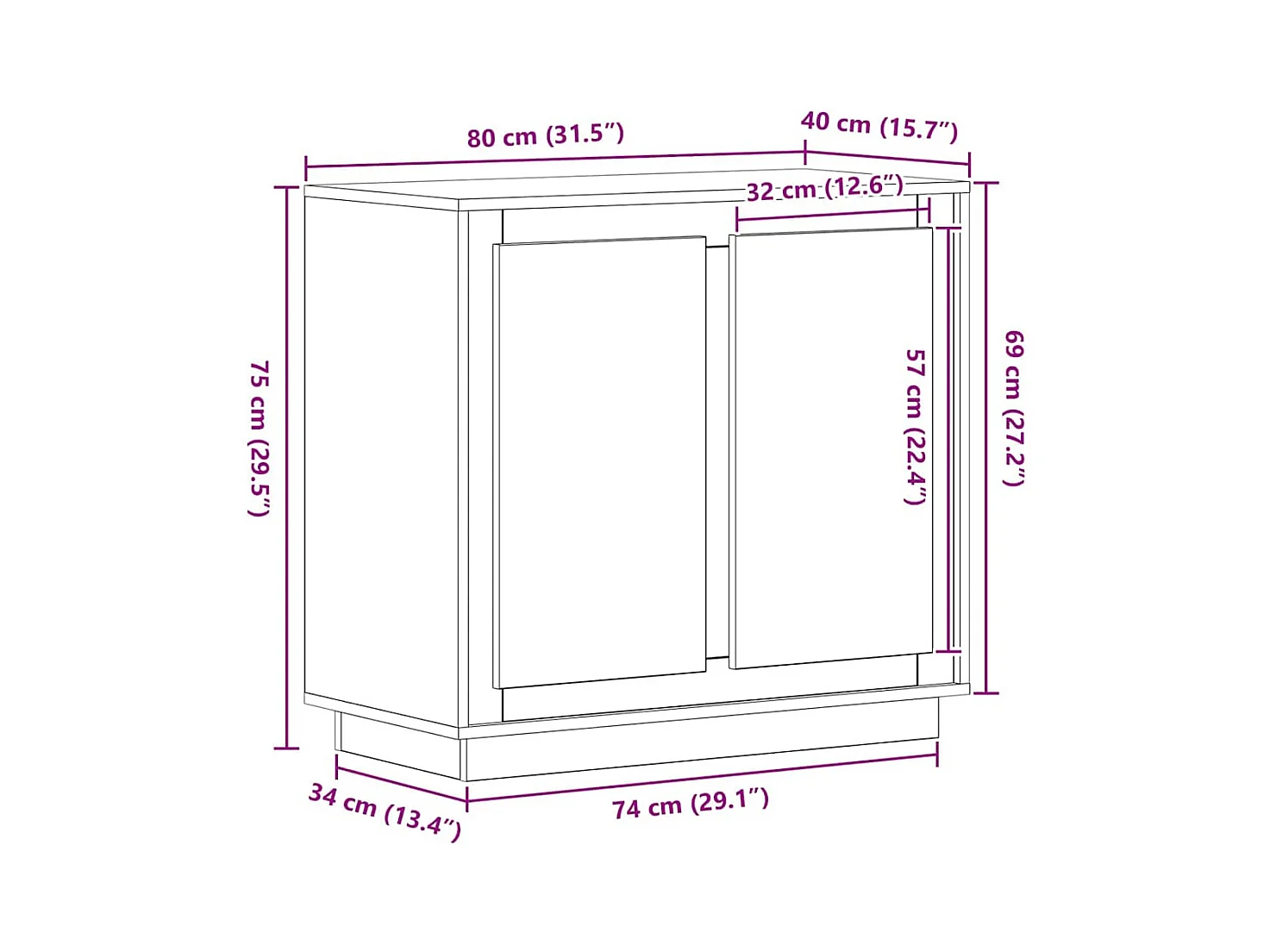 Buffet 60x34x75 cm Bois massif de pin