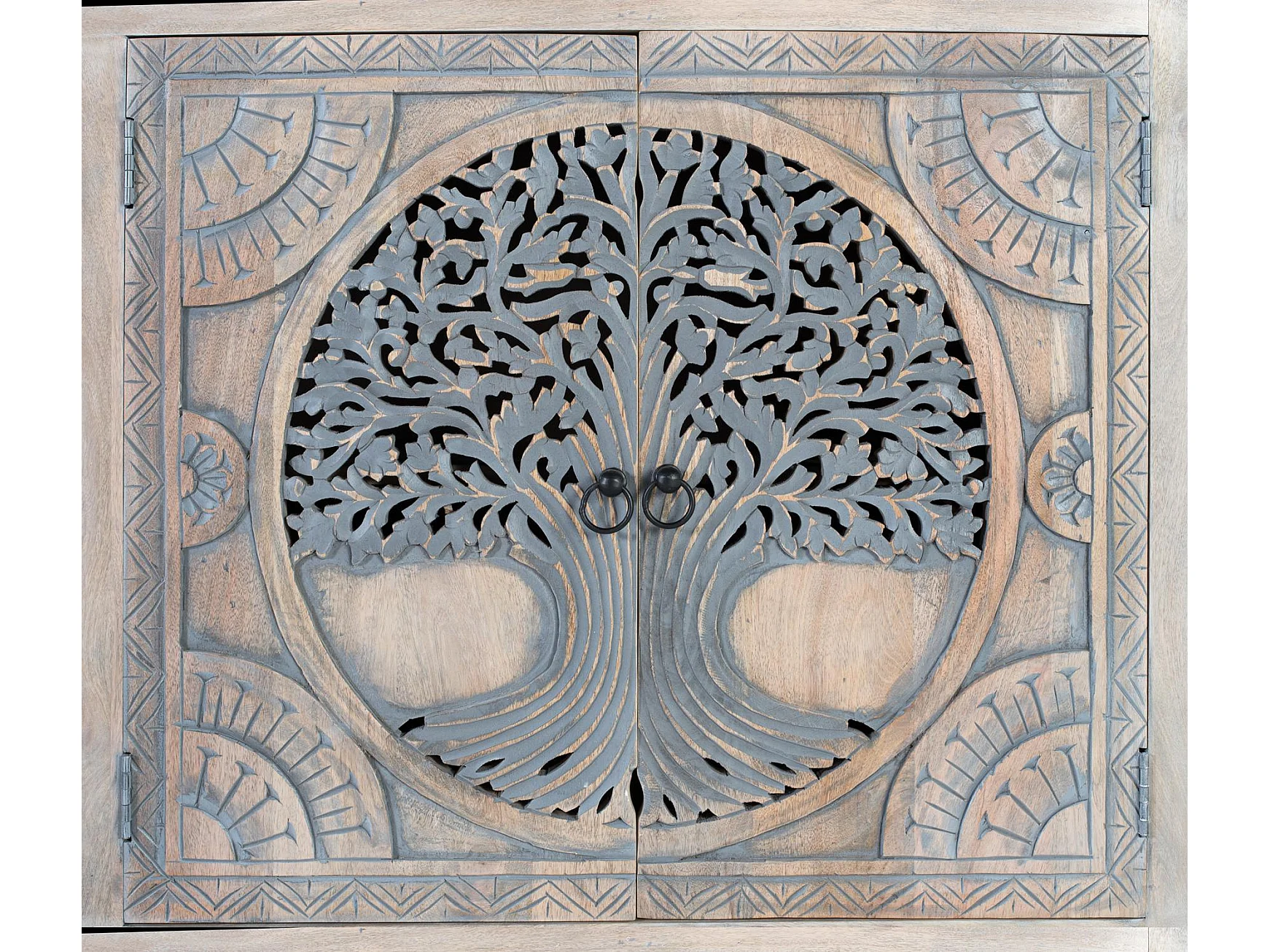 Buffet en bois de manguier avec quatre portes décorées et finition naturelle
