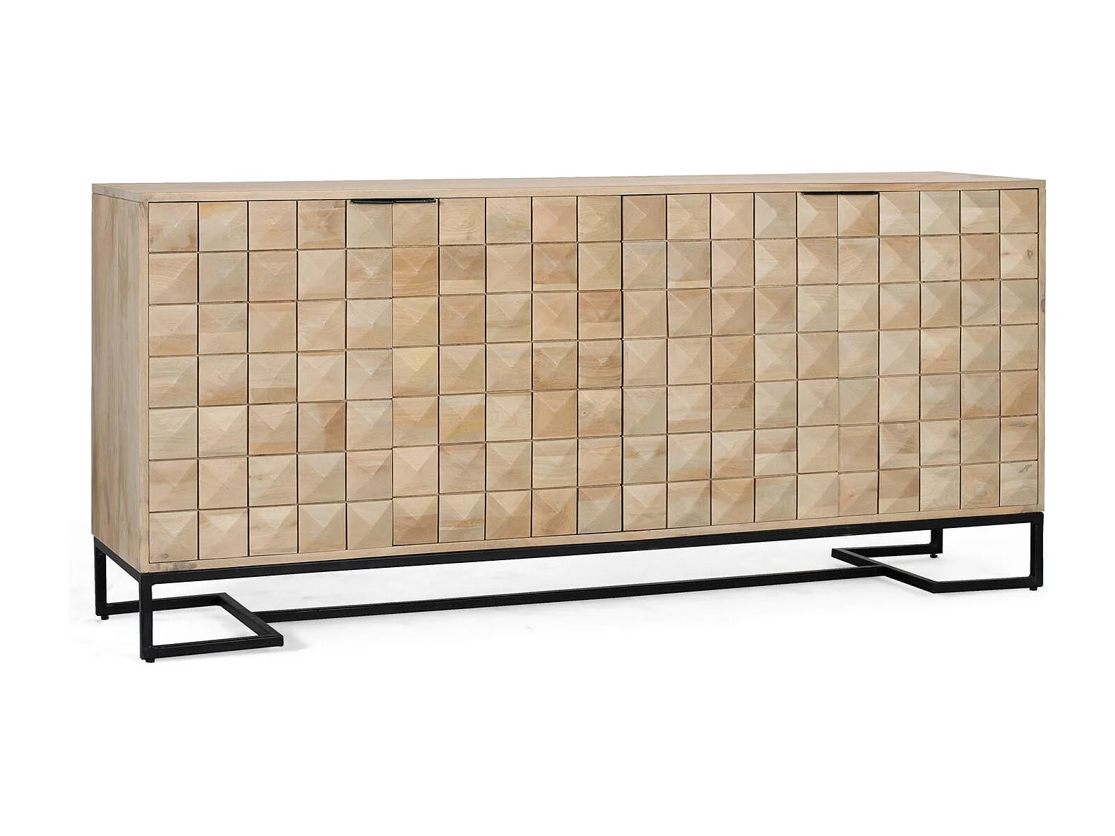 Buffet artisanal en bois de manguier avec 4 portes, 220 cm