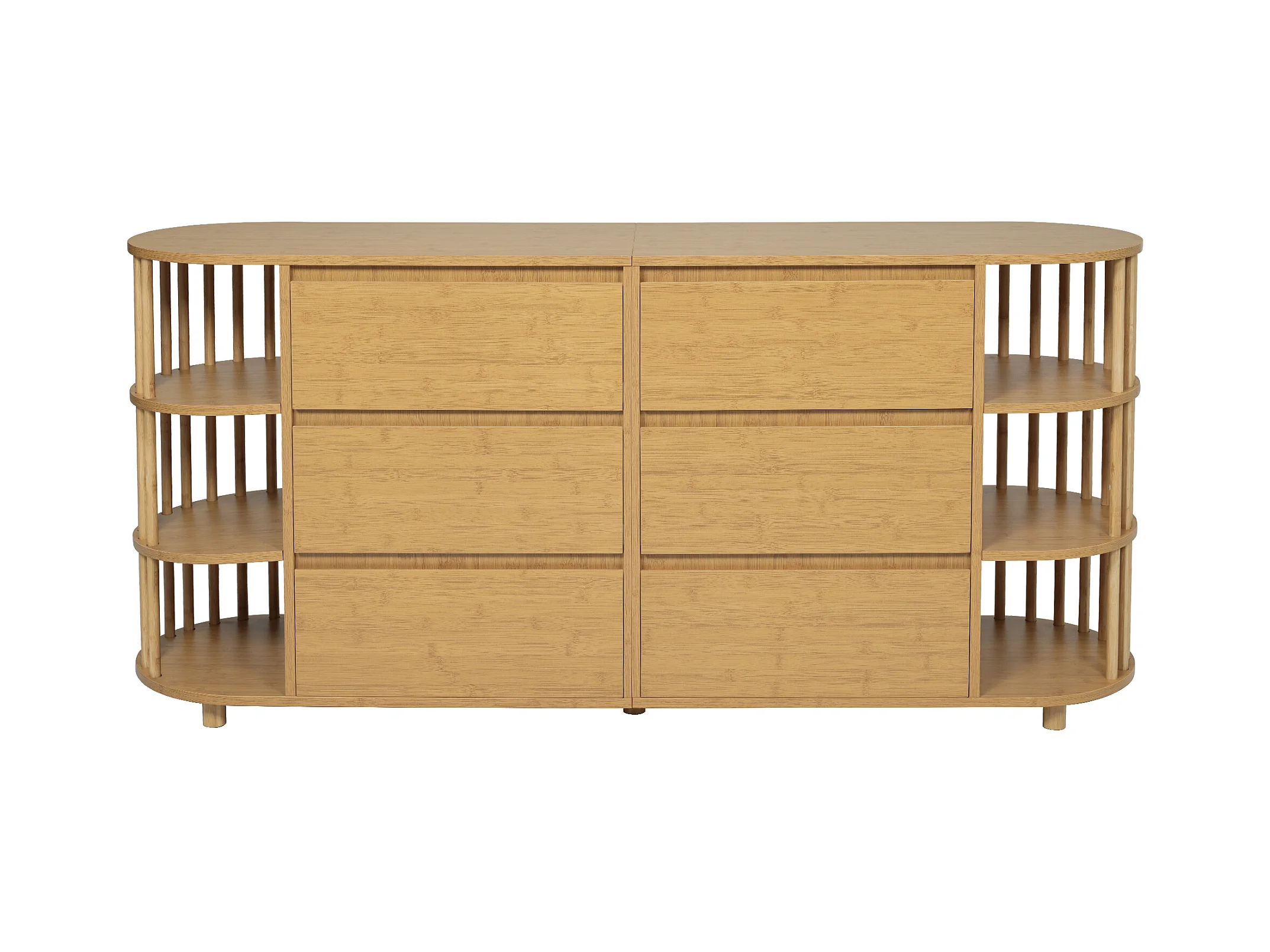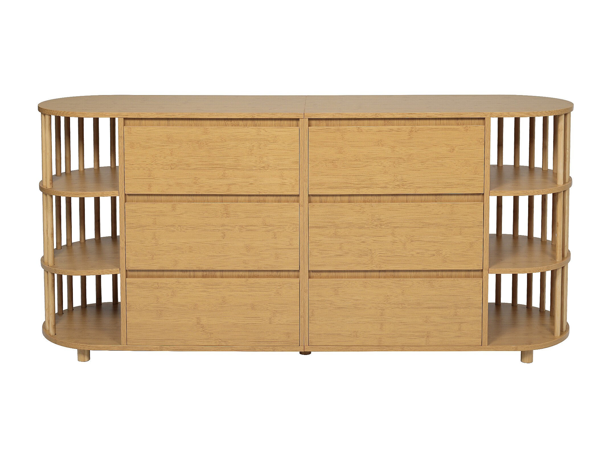 Buffet en chêne avec 6 tiroirs de rangement et étagères, pieds réglables - style contemporain