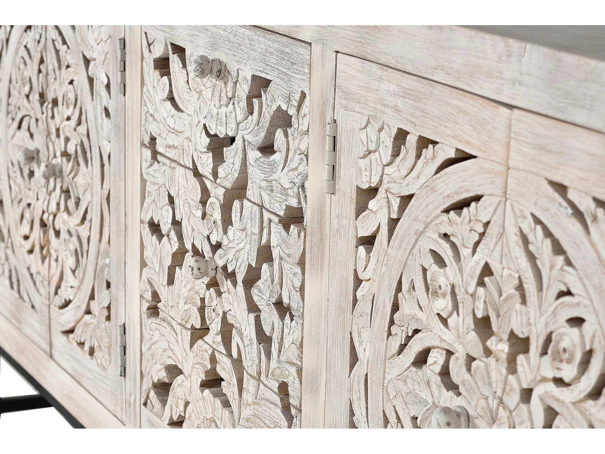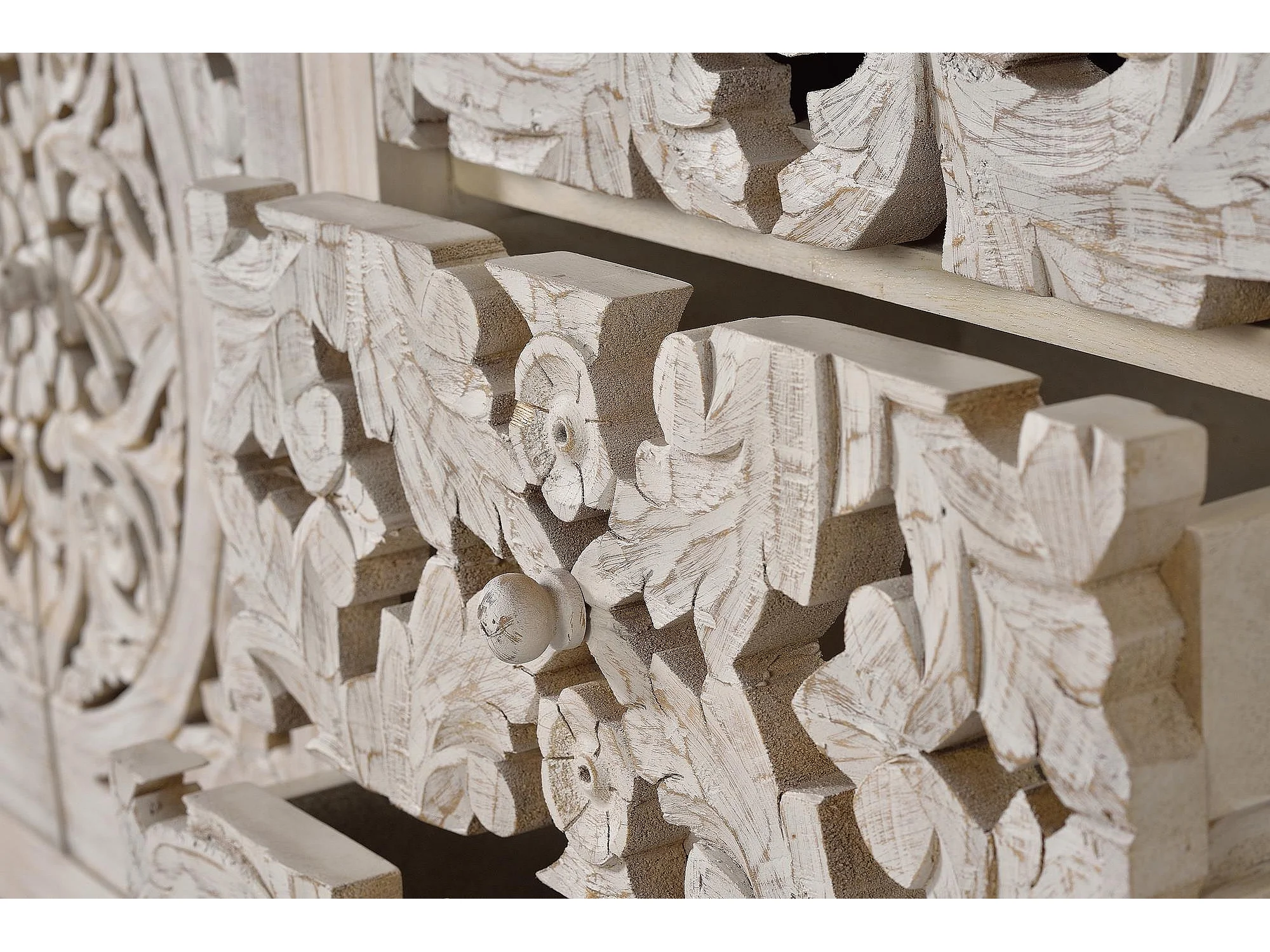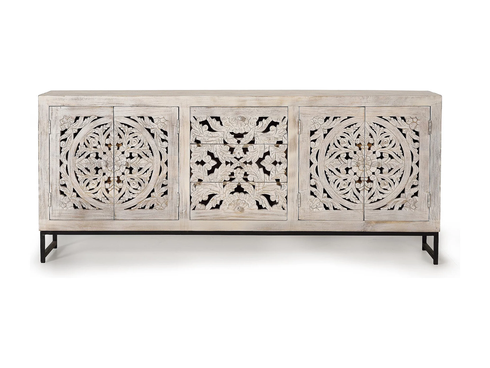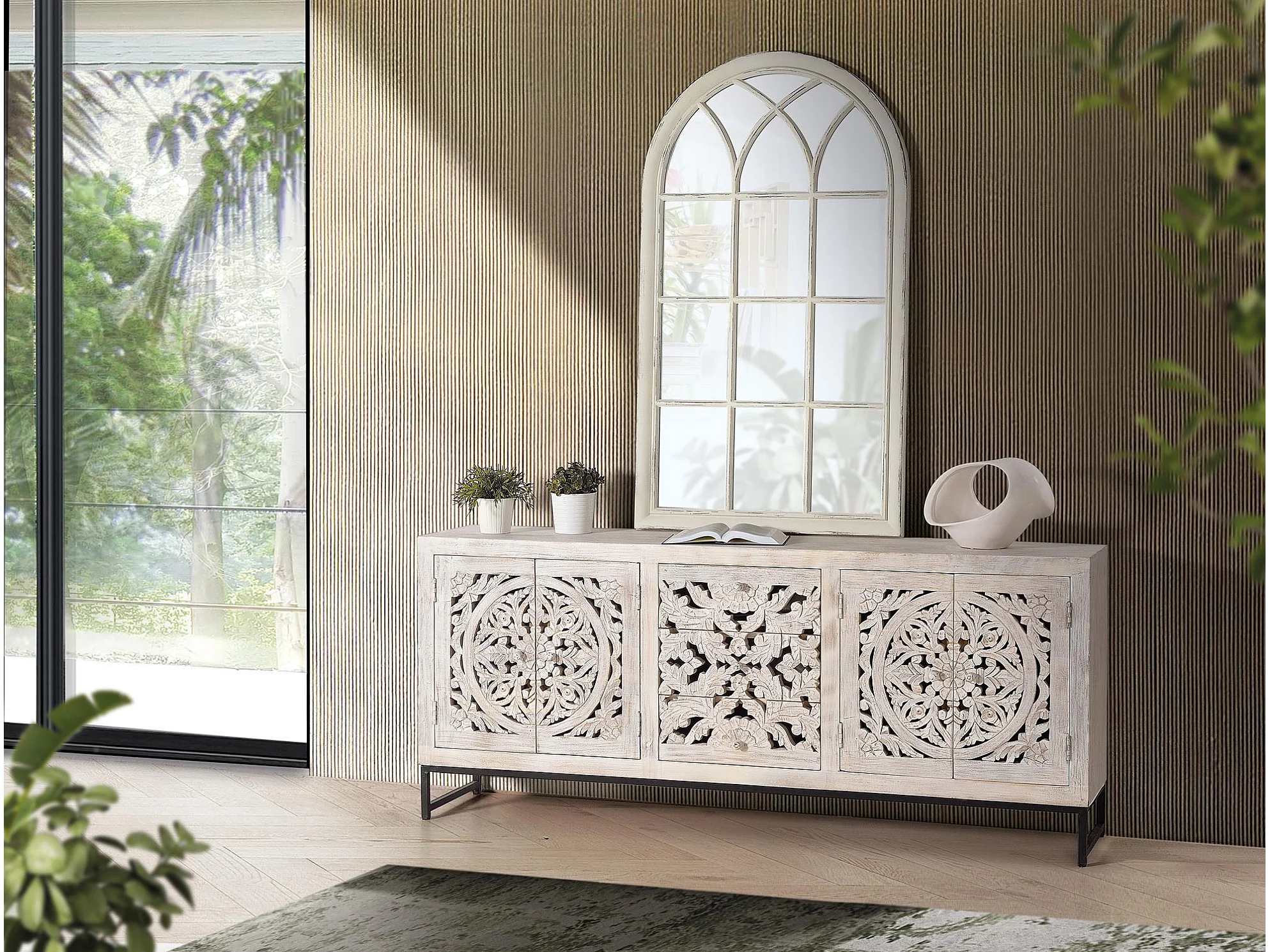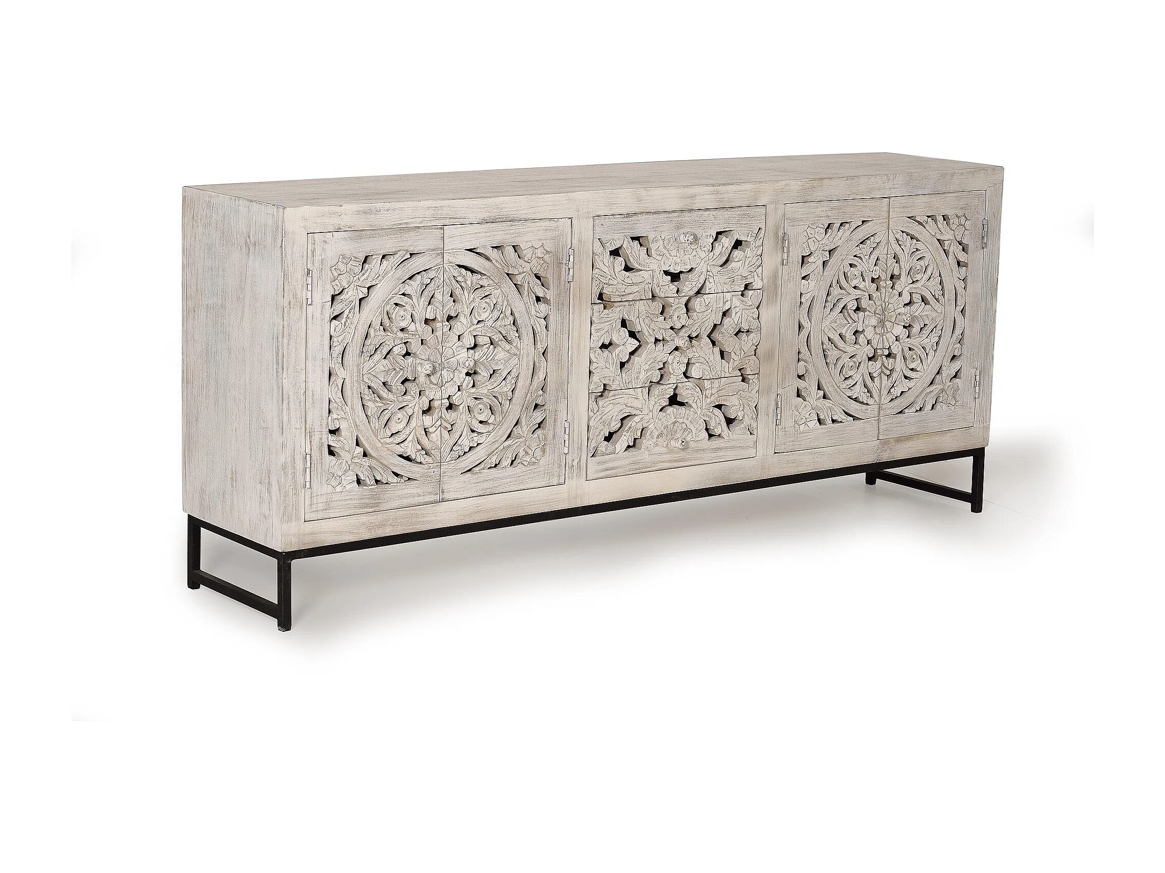 Vitrine en manguier, pieds métal blanc et gris vieilli