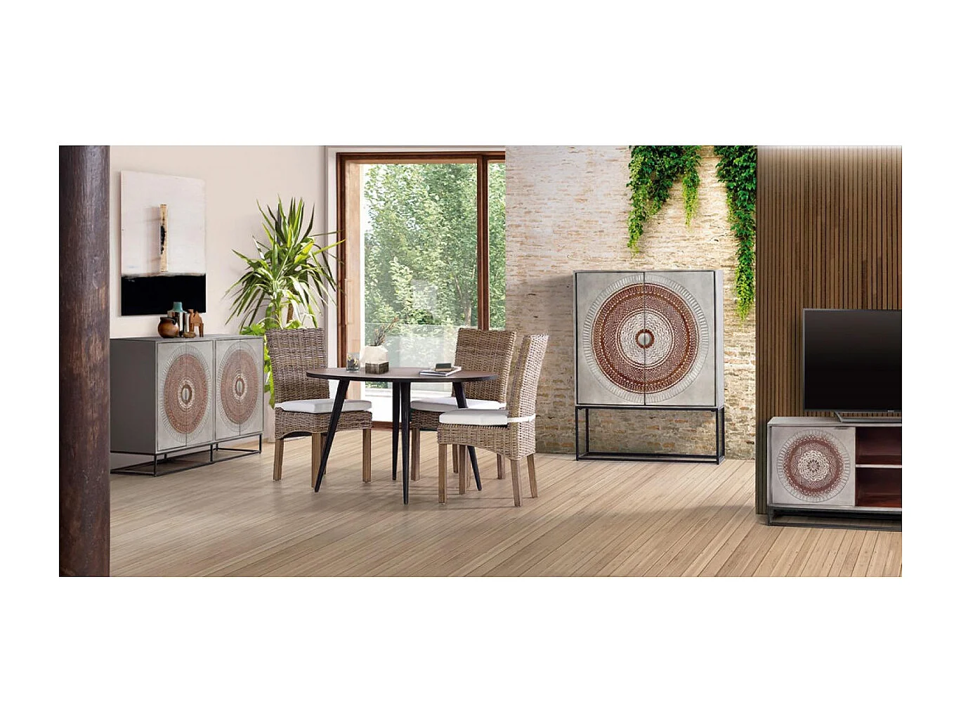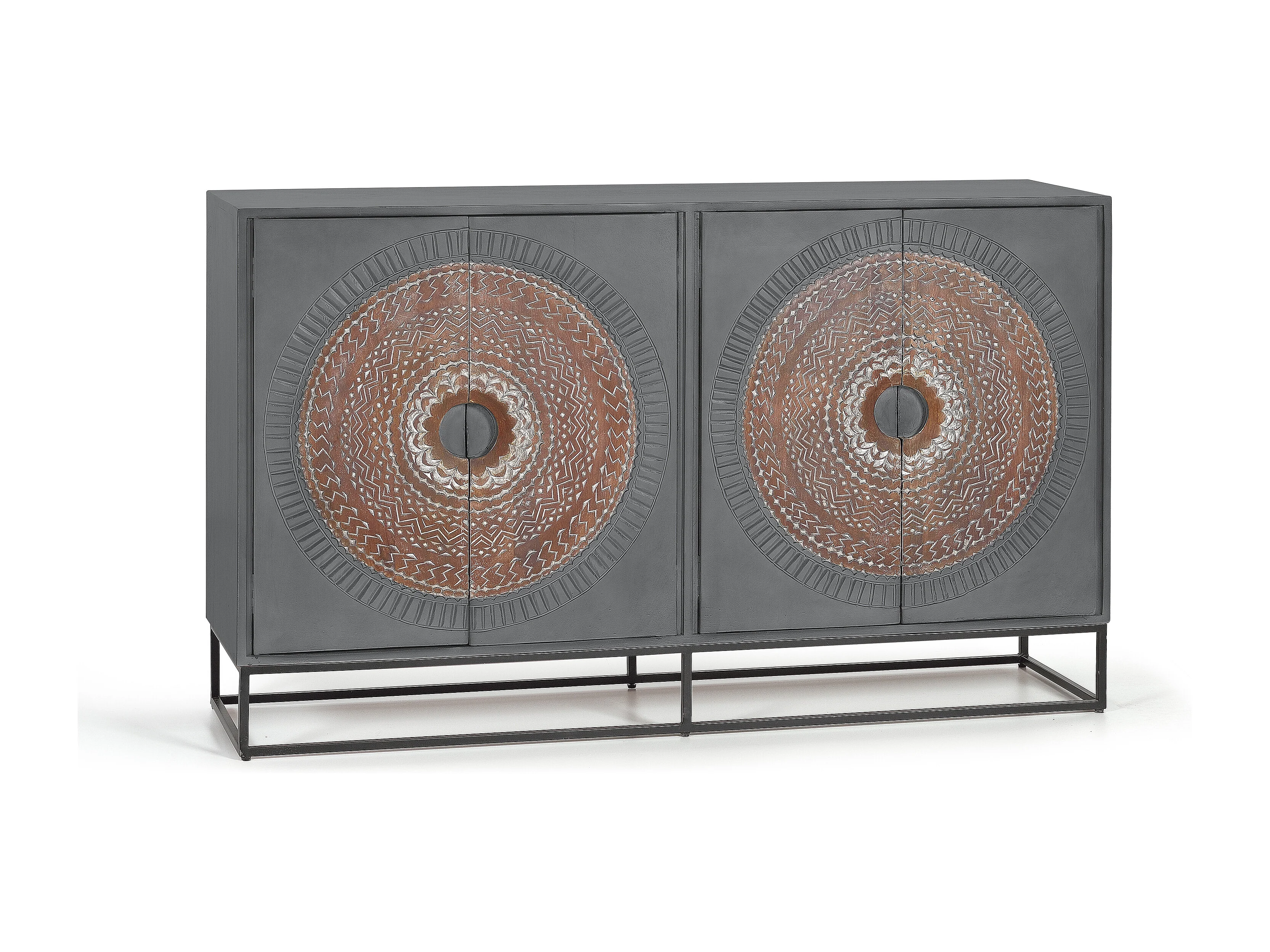 Buffet 2 portes en bois de manguier sculptée et feuille d'argent