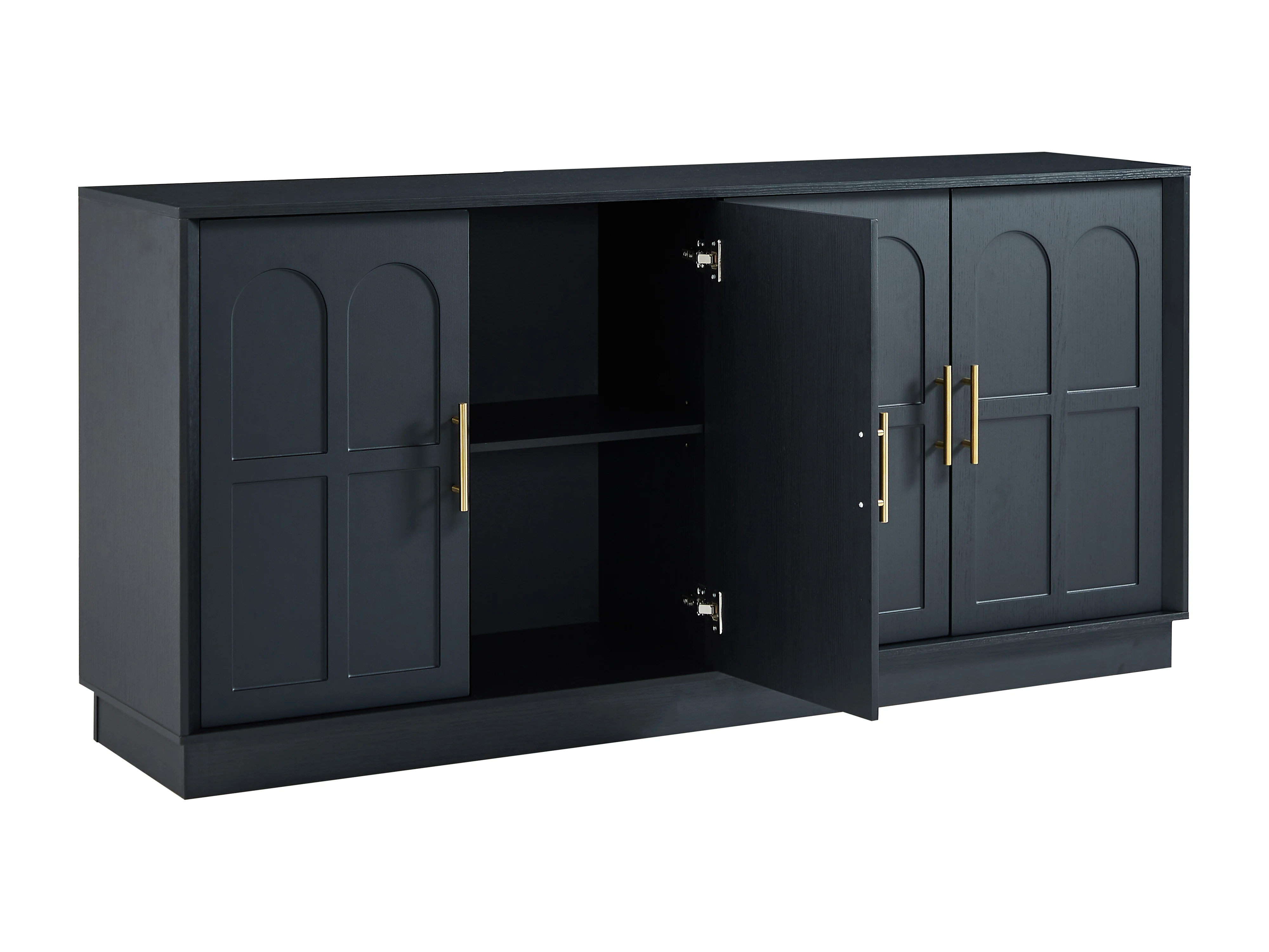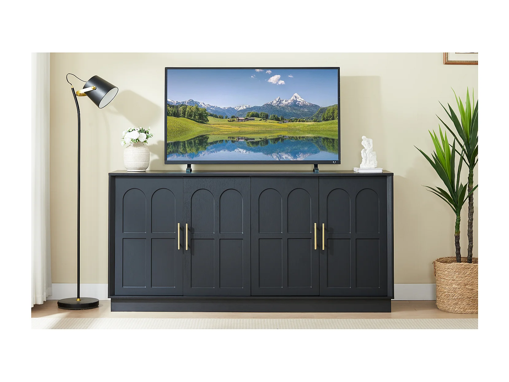 Buffet en MDF 169x40x80 cm avec 4 portes incurvées - Noir
