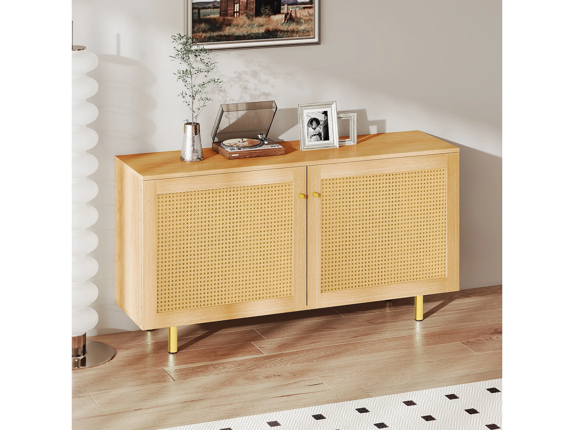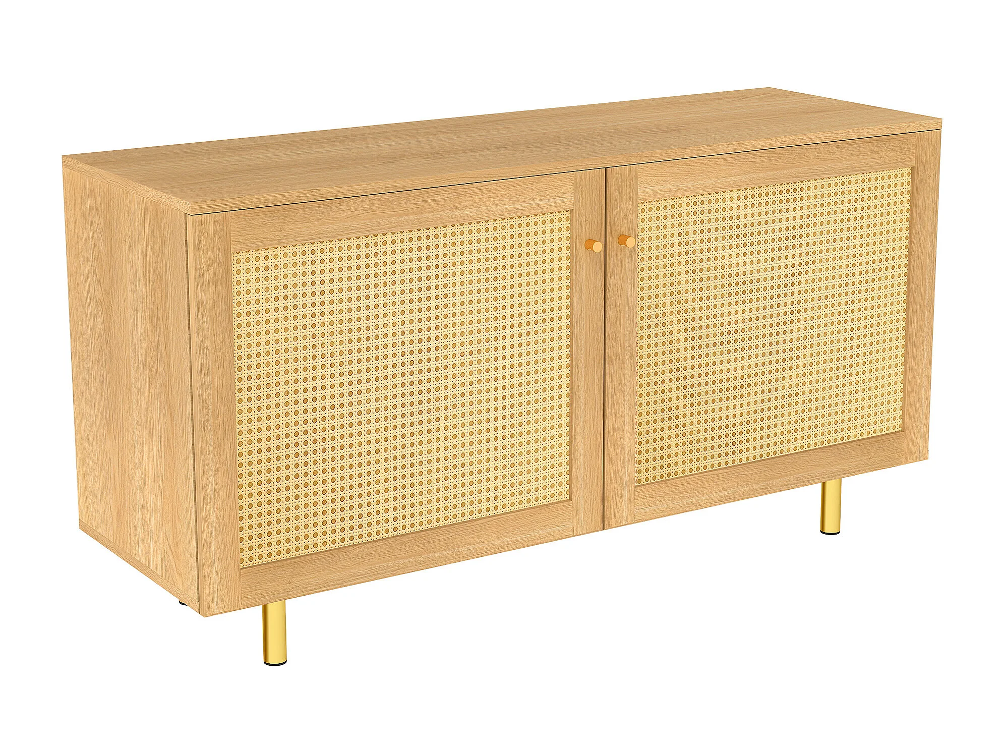 Buffet en osier à 2 portes - Aspect bois naturel 120 x 40 x63 cm