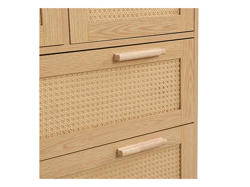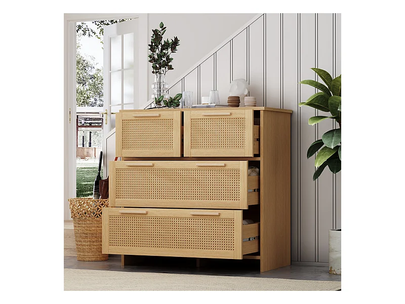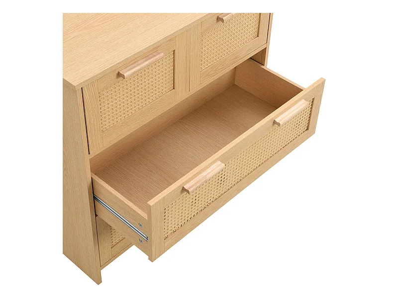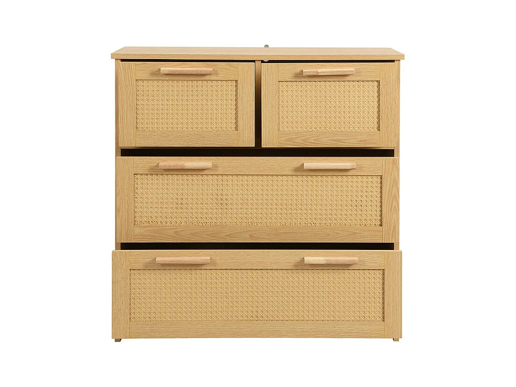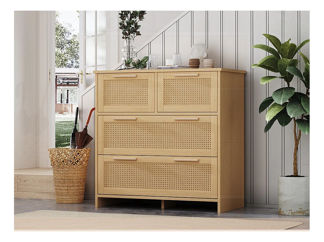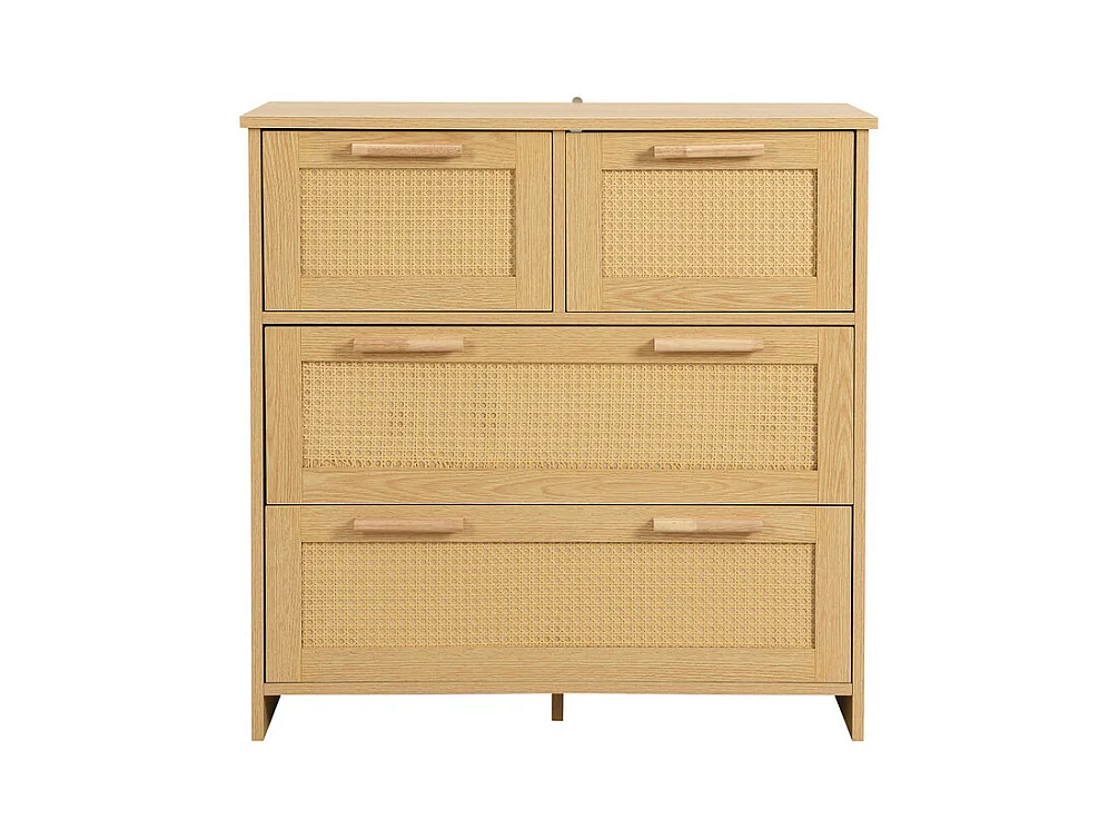 Buffet en rotin - 4 tiroirs avec poignées en bois massif - Naturel