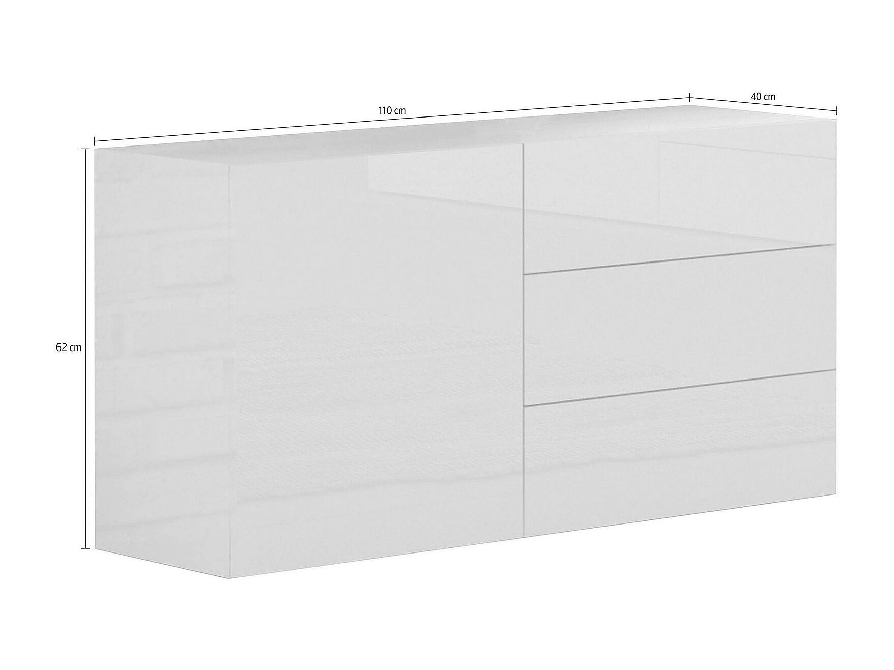 Buffet Sebastiano, Buffet de cuisine avec 1 porte et 3 tiroirs, Buffet de salon, 100% Made in Italy, 110x40h47 cm, Anthracite Brillant