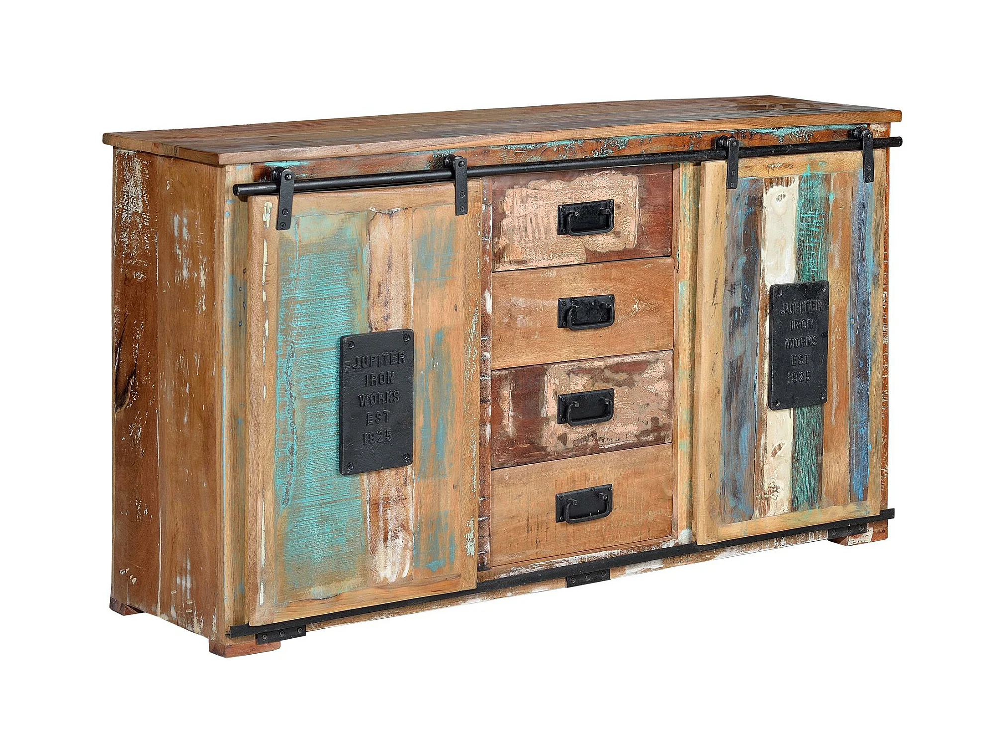 Buffet en bois recyclé multicolore