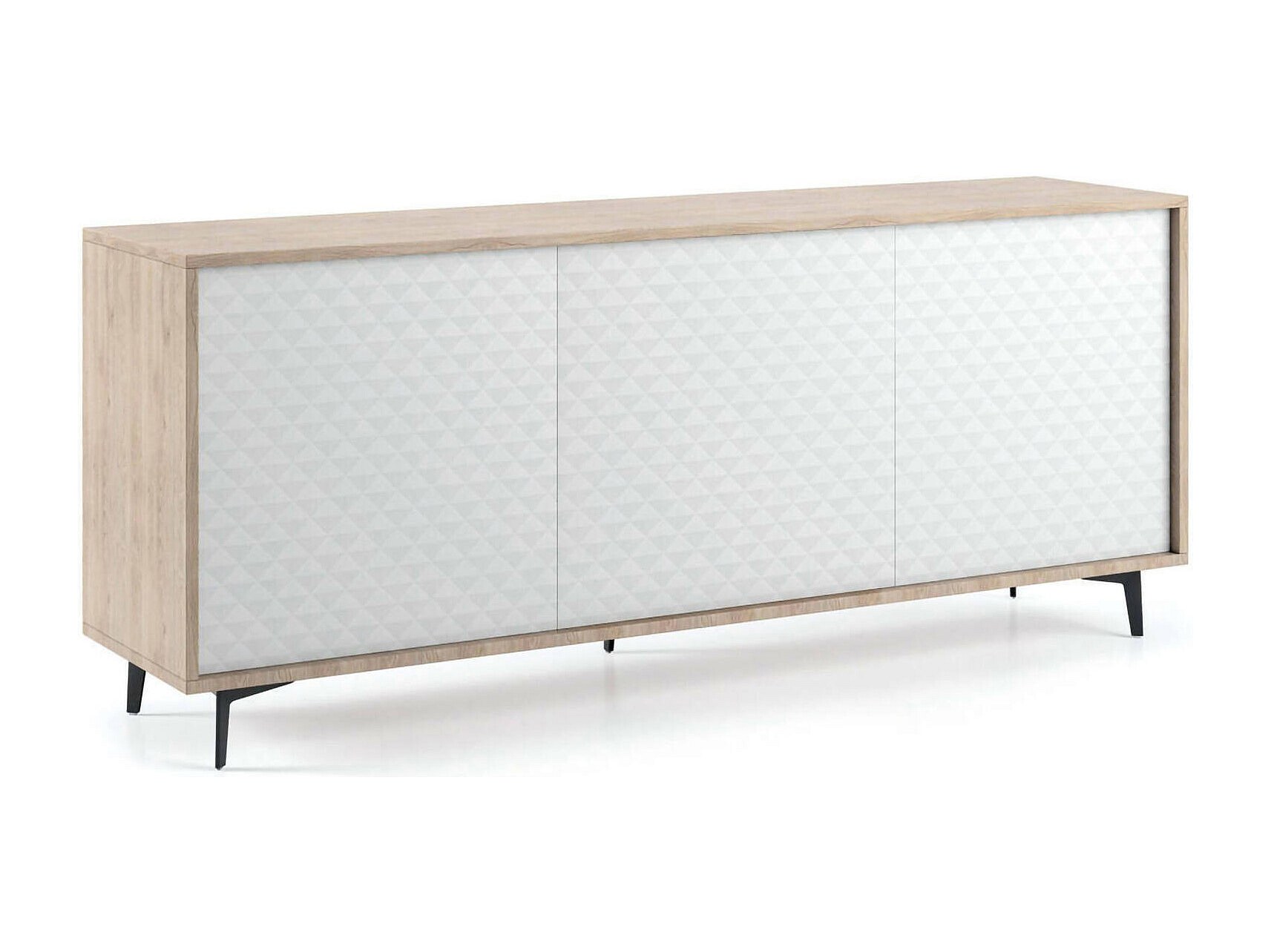 Buffet Fresia, Buffet avec 3 portes et 1 étagère réglable, Buffet de salon élégant, Meuble TV, 100% Made in Italy, 184x45h77 cm, Blanc et Chêne