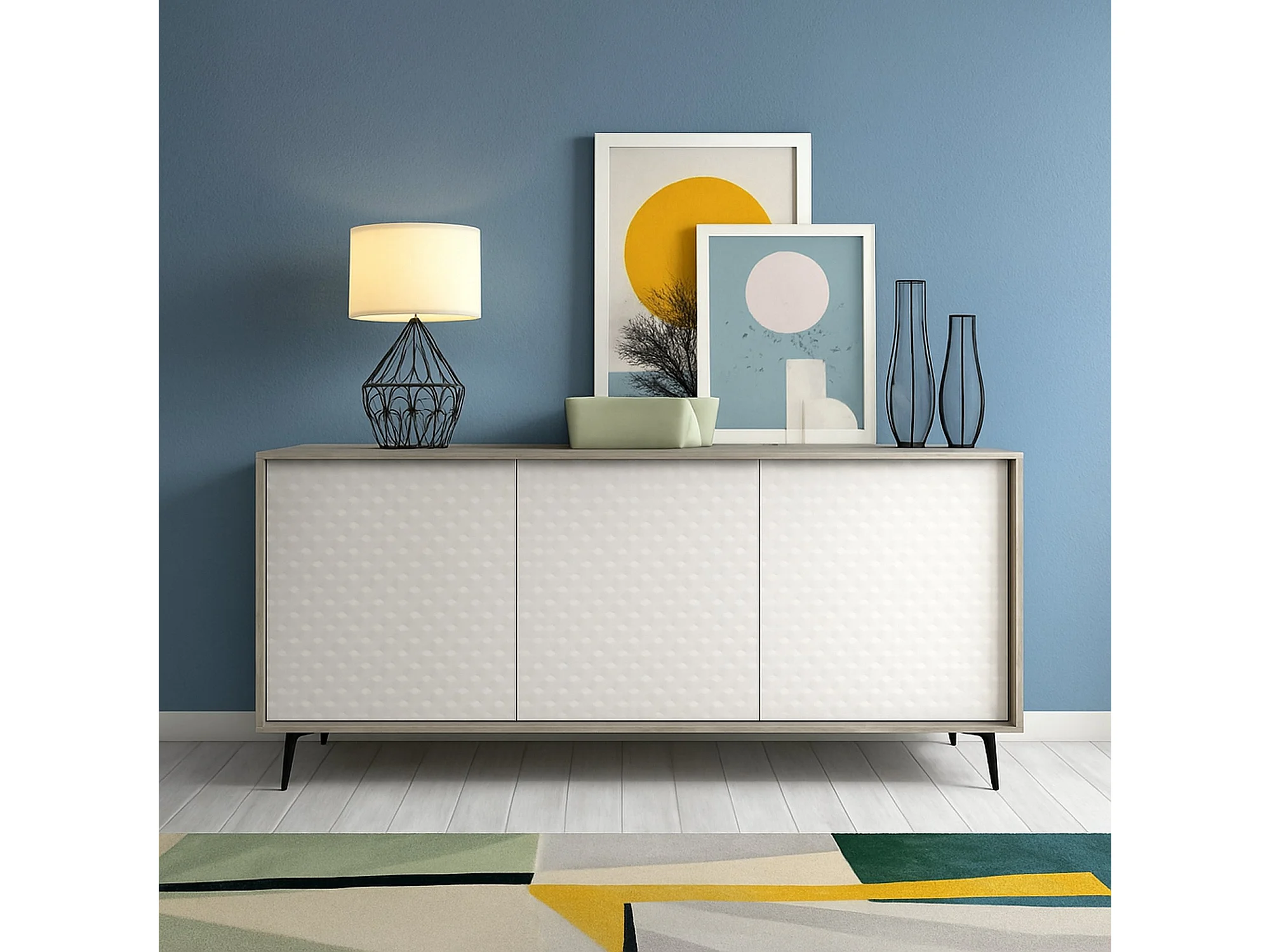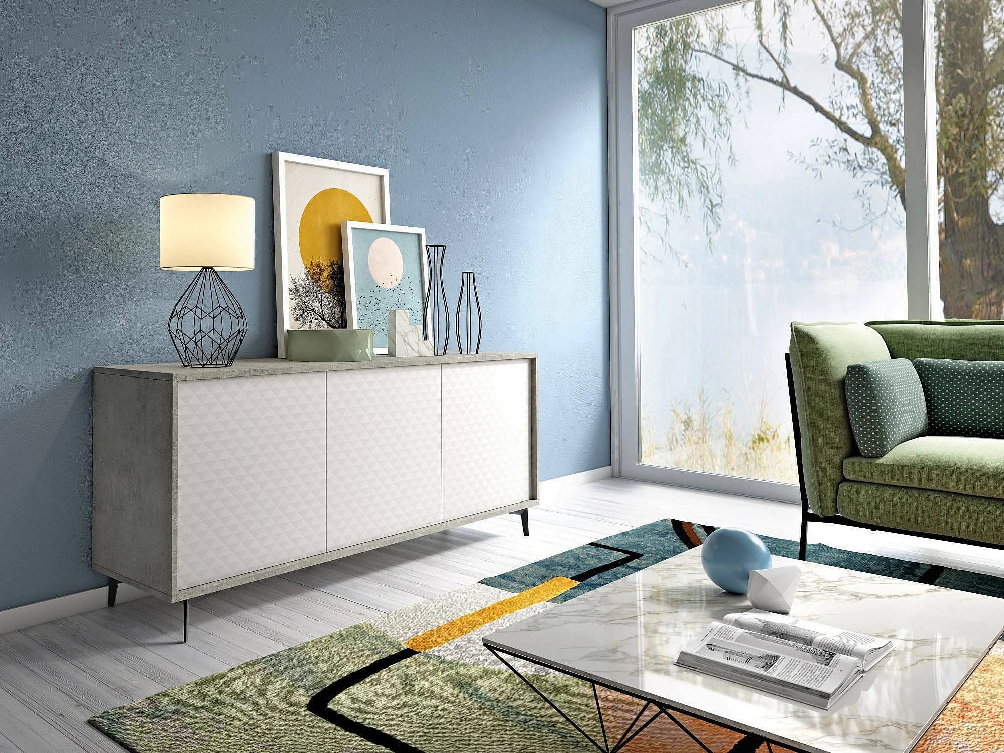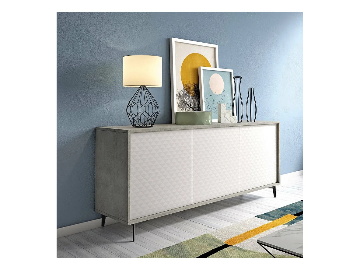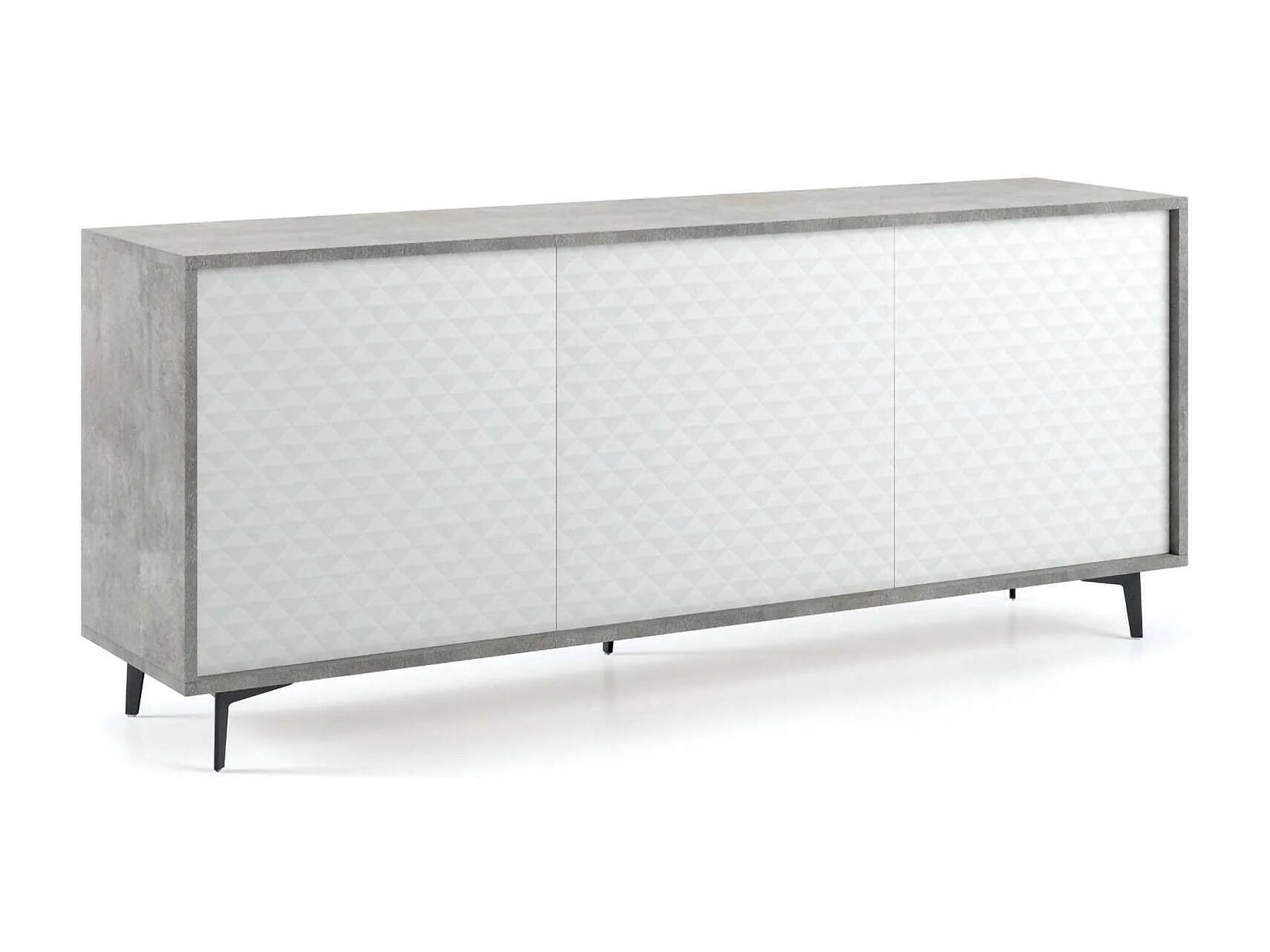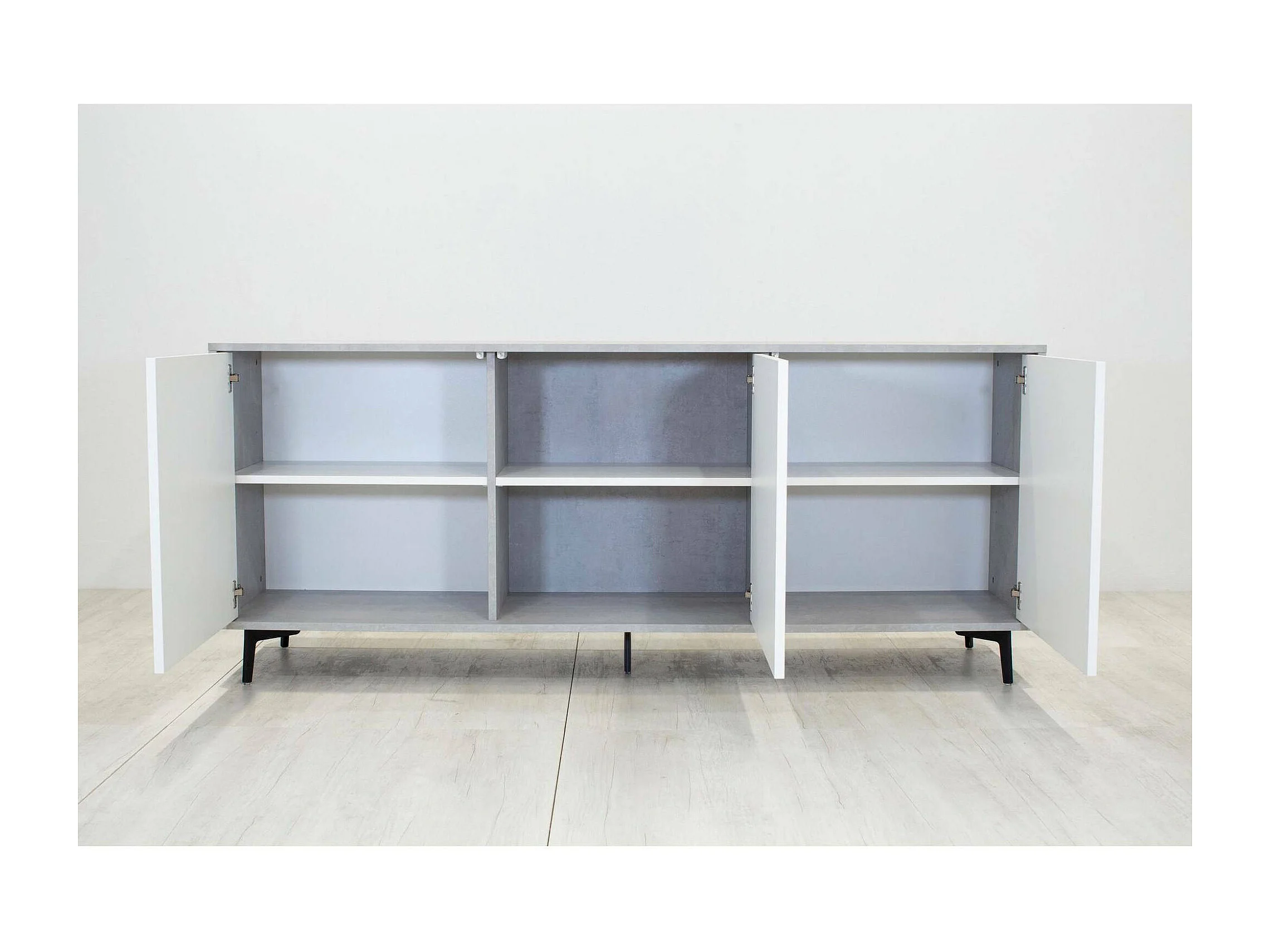 Buffet Fresia, Buffet avec 3 portes et 1 étagère réglable, Buffet de salon élégant, Meuble TV, 100% Made in Italy, 184x45h77 cm, Blanc et Ciment