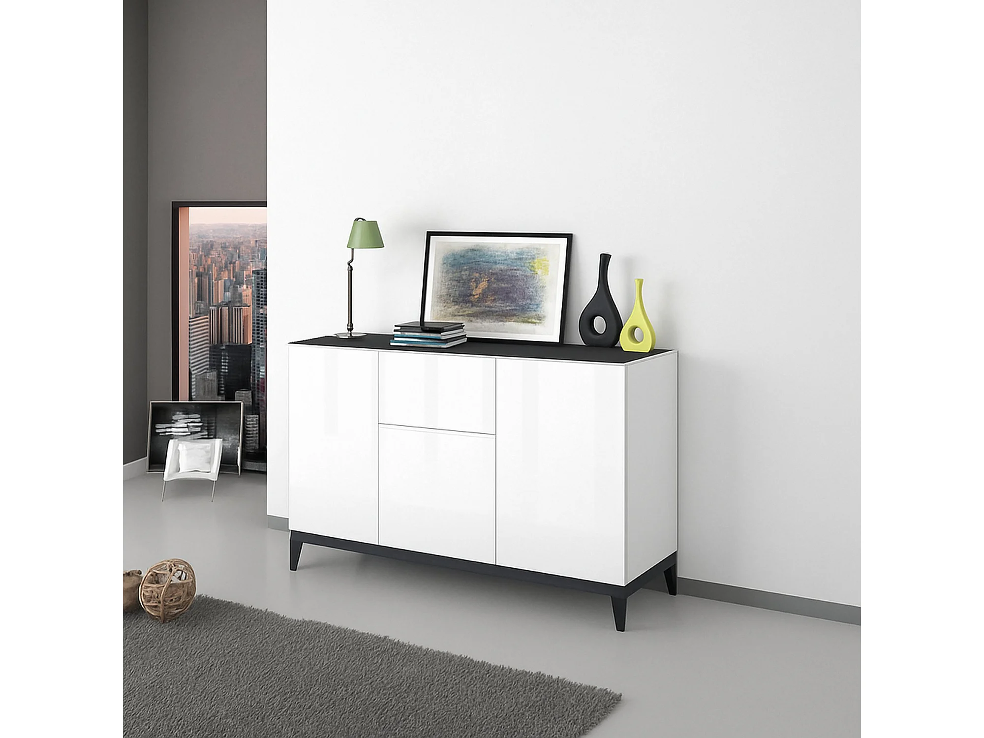 Buffet Giorgio, Buffet de cuisine avec 3 portes et 1 tiroir, Buffet de salon, Buffet de cuisine, 100% Made in Italy, 120x40h82 cm, Blanc brillant et ardoise