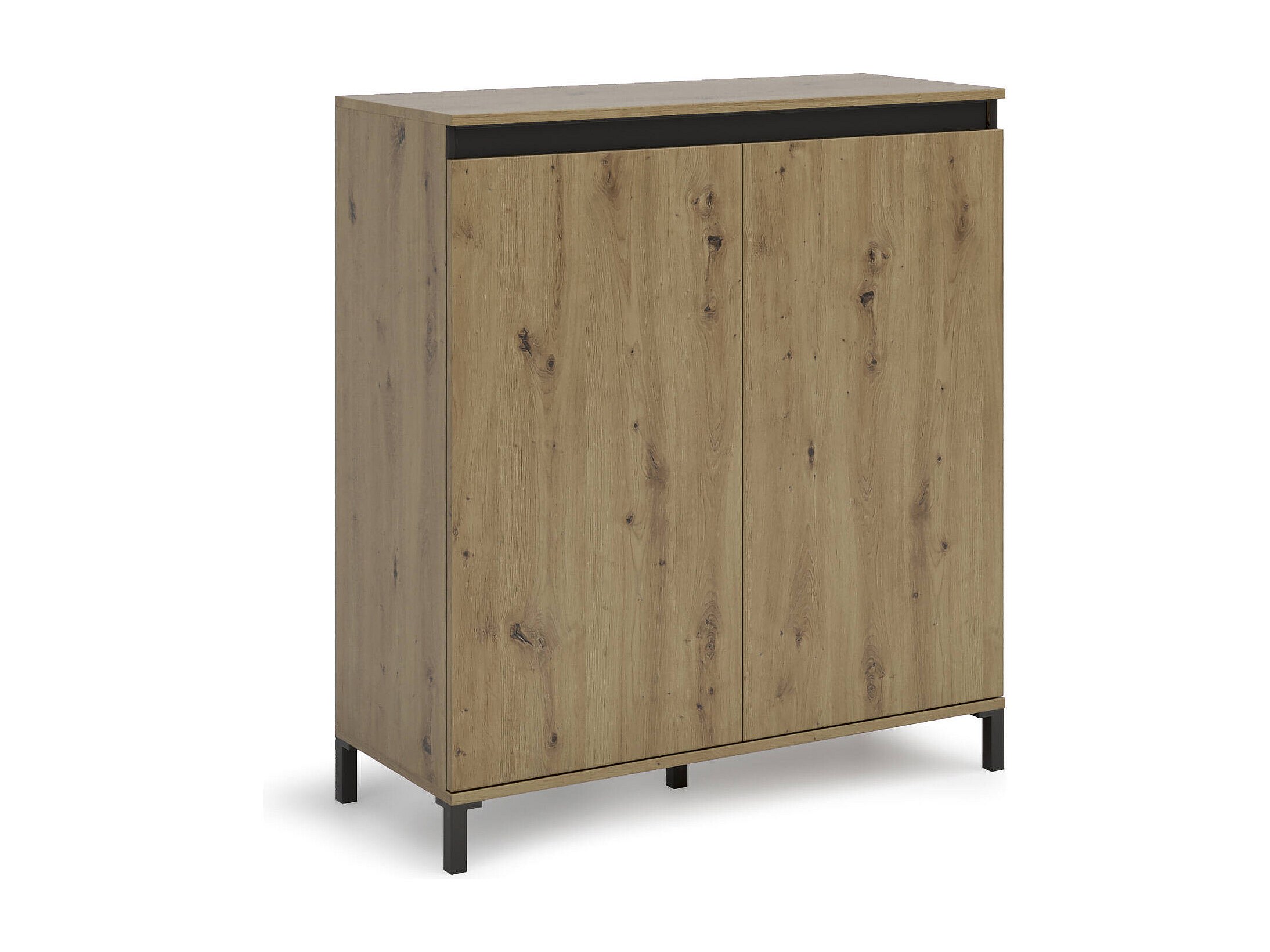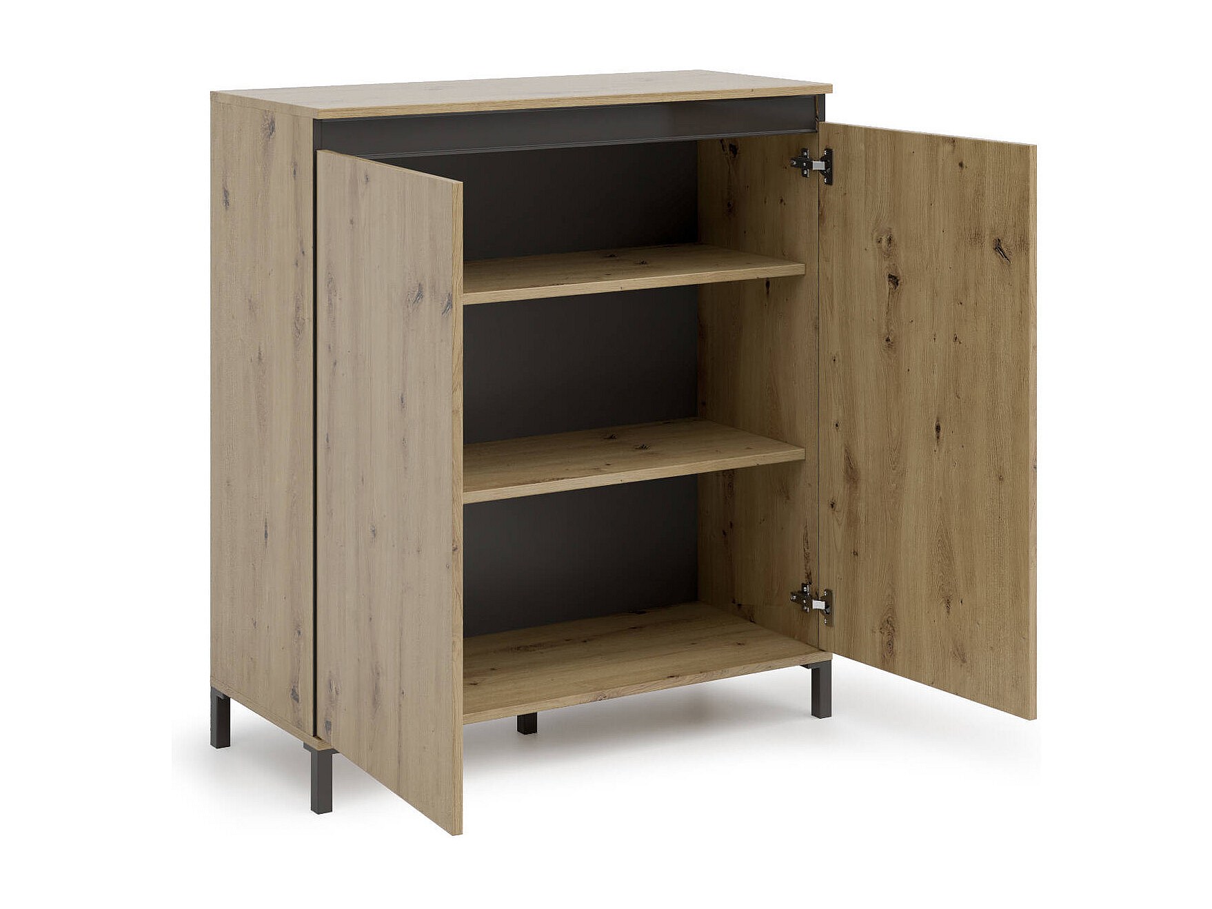 Buffet Alwaid, Buffet du salon, Commode de salon, Garde-manger de cuisine, 93x36h115 cm, Chêne et Noir