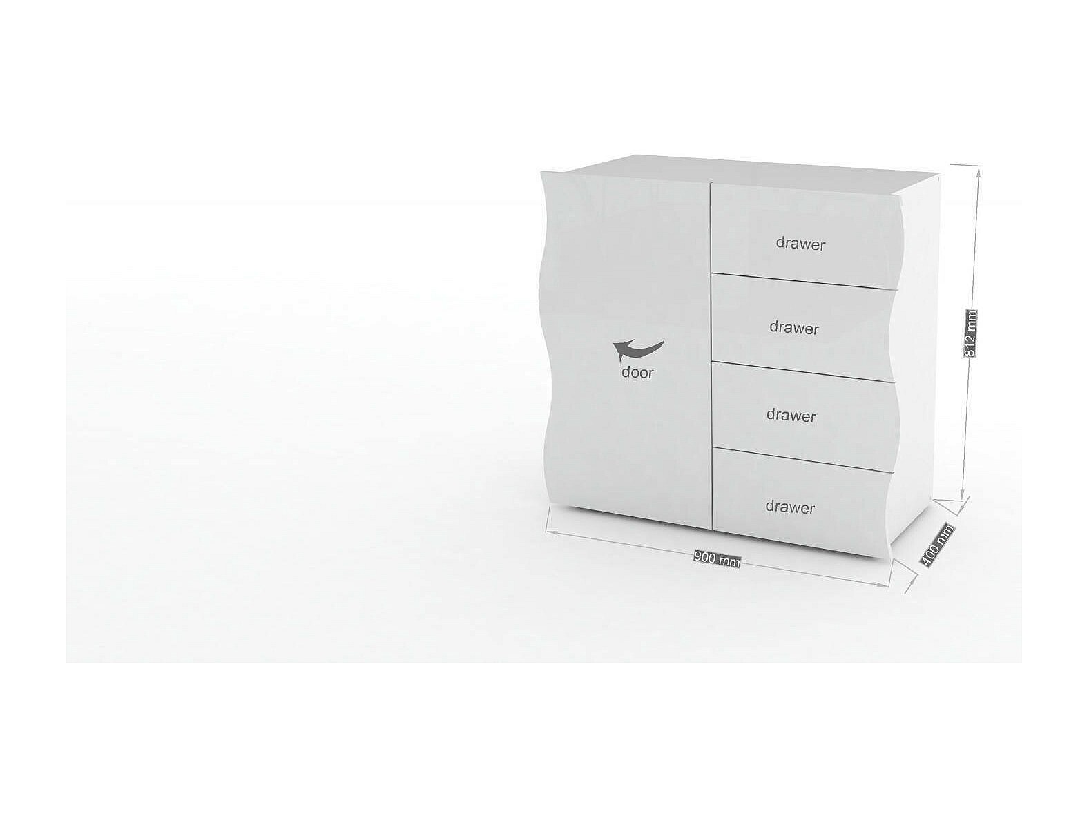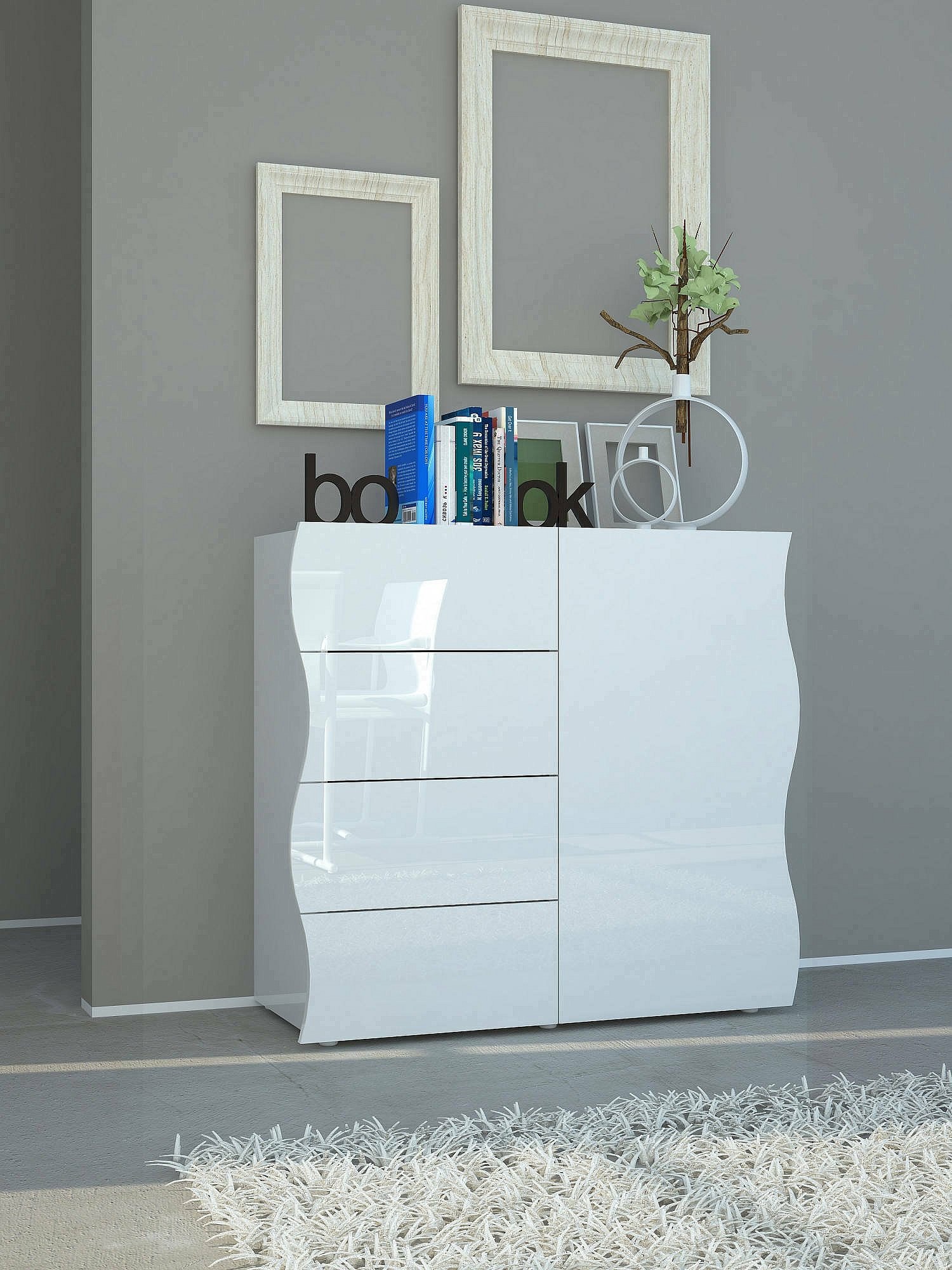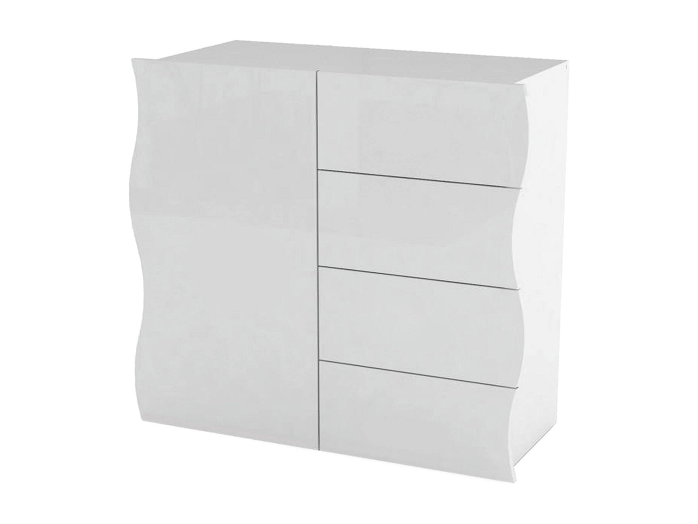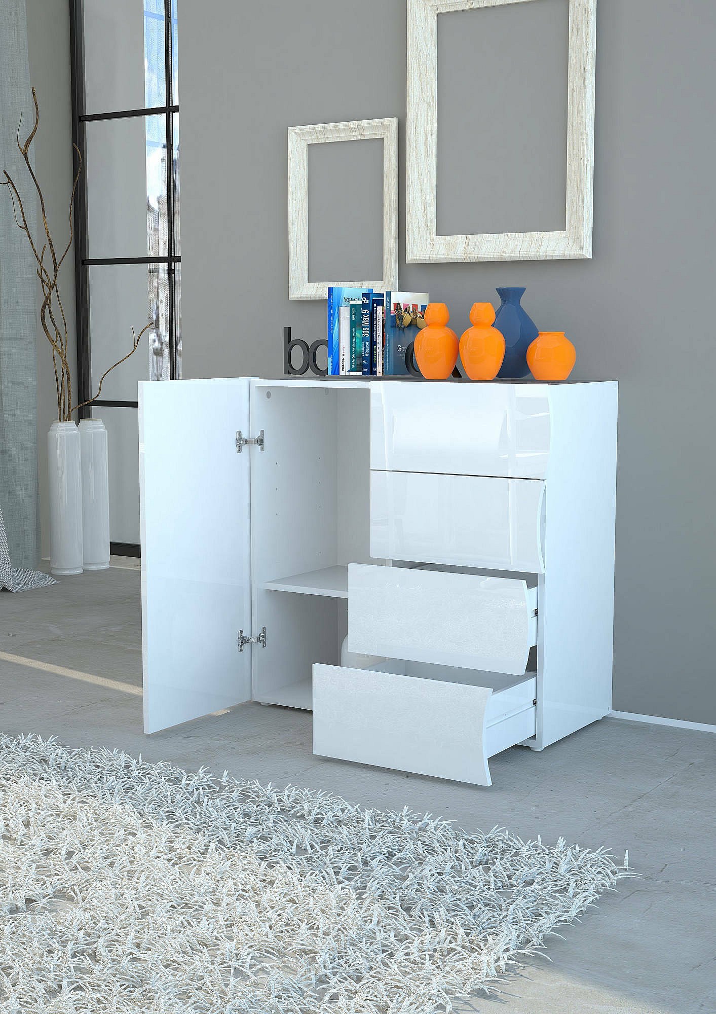 Buffet Romolo, Buffet de cuisine avec 2 portes et 4 tiroirs, Buffet de salon, 100% Made in Italy, 124x40h81 cm, Blanc brillant
