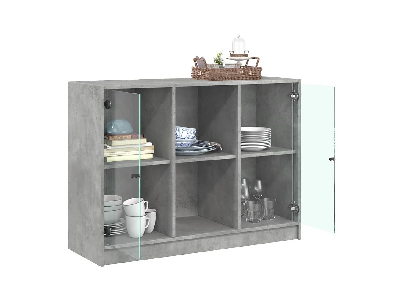 Buffet haut avec portes en verre gris béton 35x37x109 cm FR49773