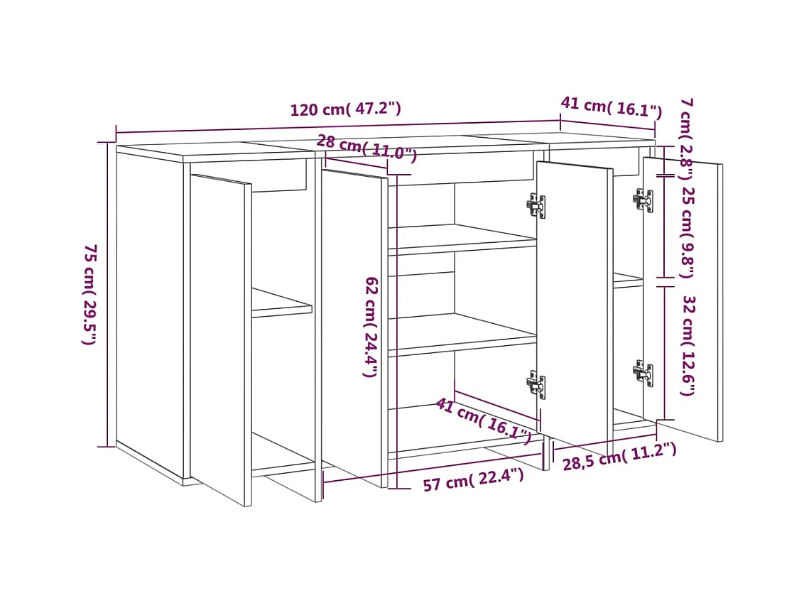 Buffet Sonoma gris 91x29,5x75 cm Bois d'ingénierie