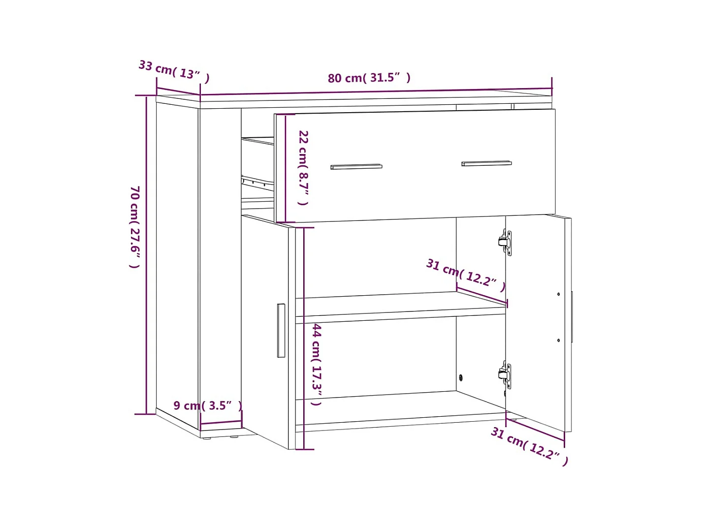 Buffet Sonoma gris 80x33x70 cm Bois d'ingénierie