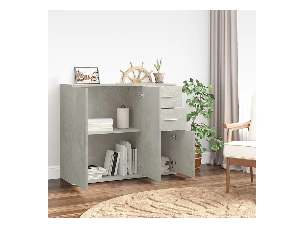 Buffet gris béton 91x28x75 cm bois d'ingénierie
