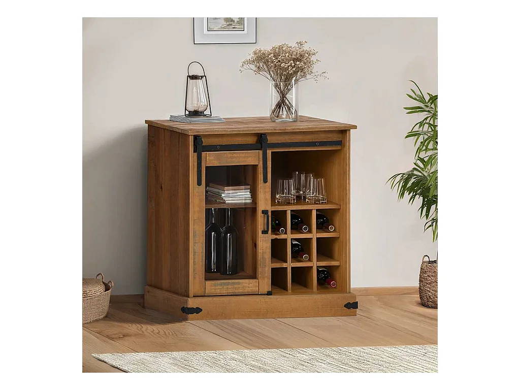 Buffet avec porte vitrée FLAM 80x40x80 cm bois massif de pin