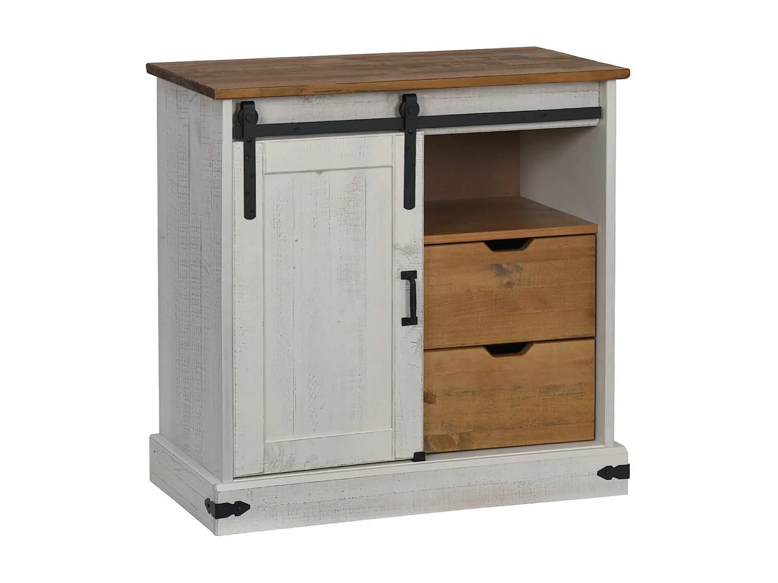 Buffet HALDEN porte coulissante blanc 80x40x80 cm bois massif