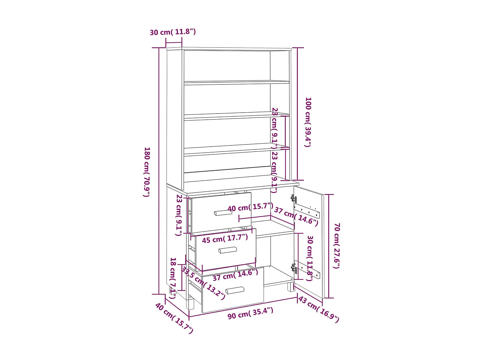 Buffet HAMAR Bois massif de pin Gris foncé
