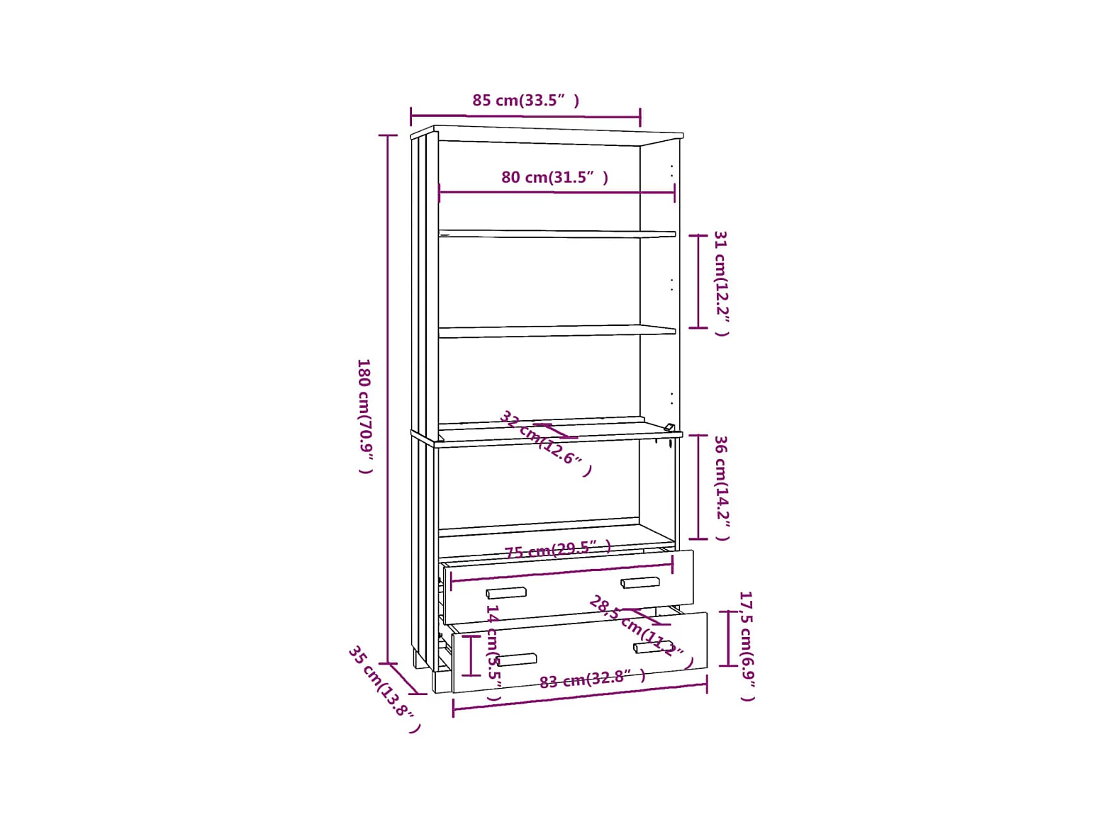 Buffet HAMAR Marron miel 85x35x80 cm Bois massif de pin