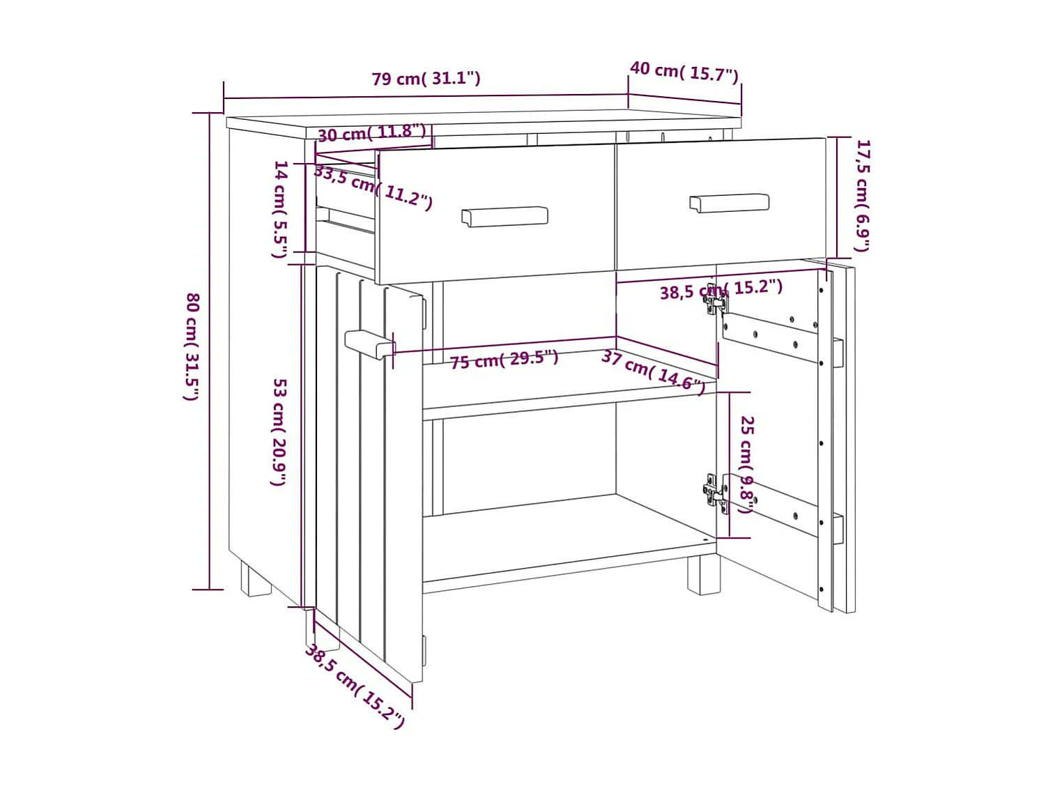 Buffet HAMAR Gris clair 79x40x80 cm Bois massif de pin
