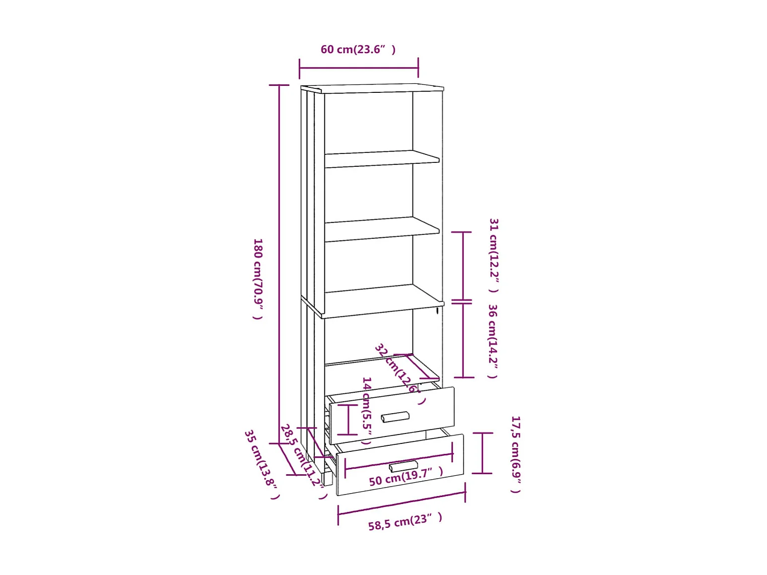 Buffet HAMAR Gris foncé 60x35x180 cm Bois de pin massif