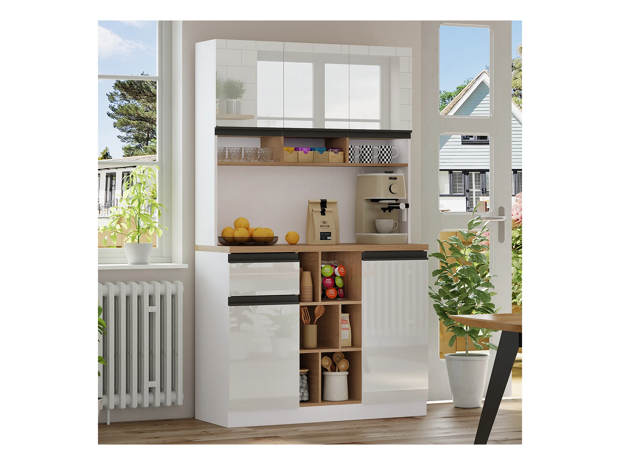 Buffet haut de cuisine - 140 x 38.5 x 175 cm - avec 3 tiroirs + 5 portes - MDF - blanc