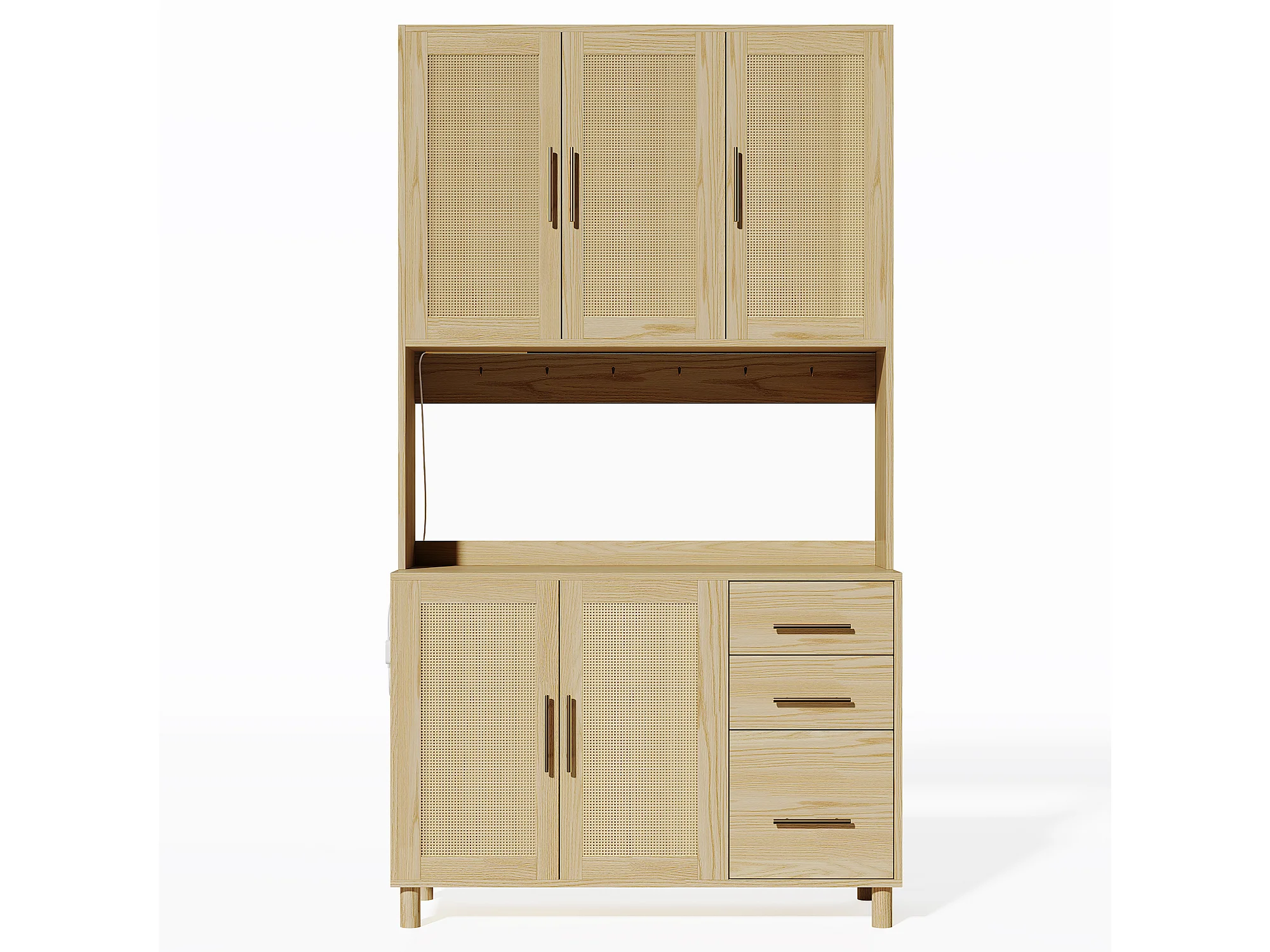 Buffet haut 183 cm avec LED, prises USB, étagères réglables et 3 tiroirs - naturel