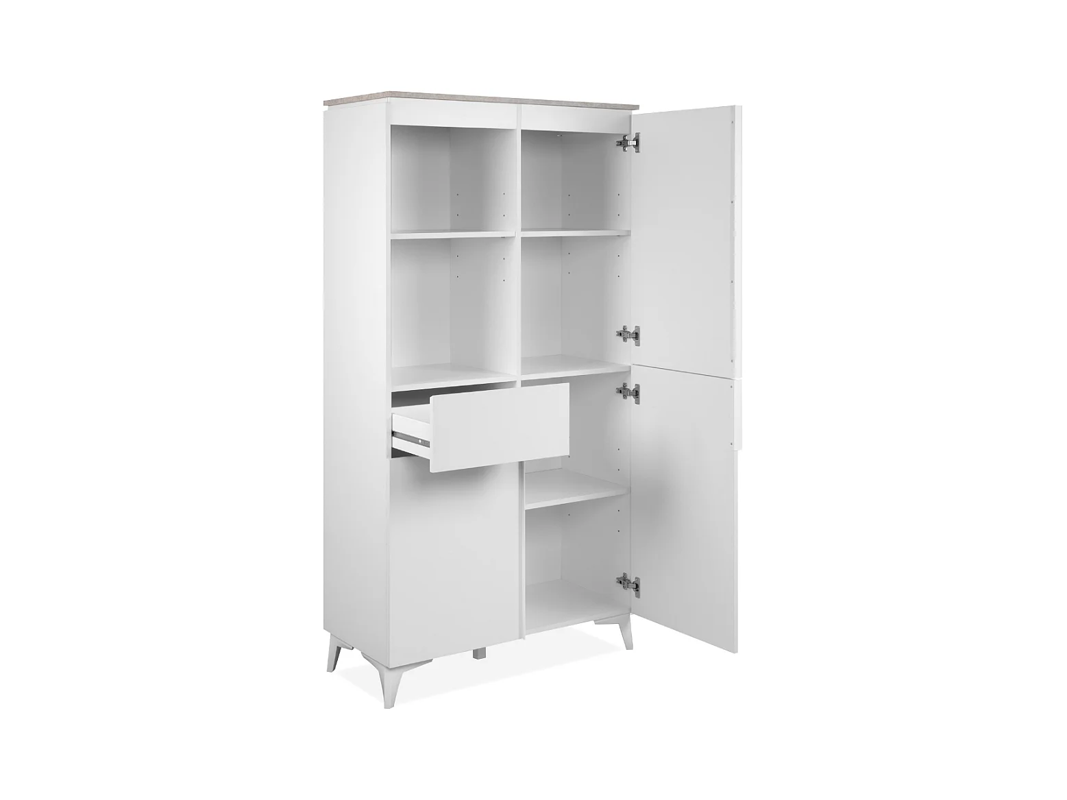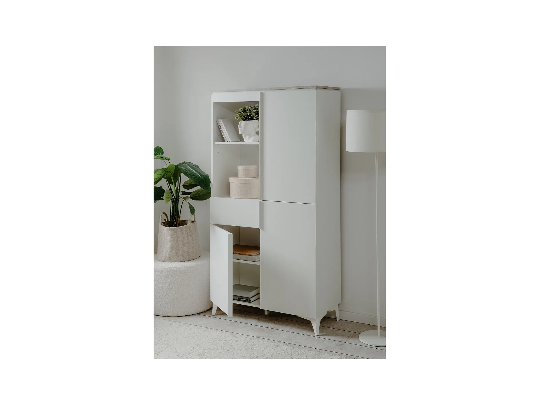 Buffet haut 3 portes, 3 étagères, 1 tiroir, et 2 niches décor travertin et blanc L88cm - BERTRIX