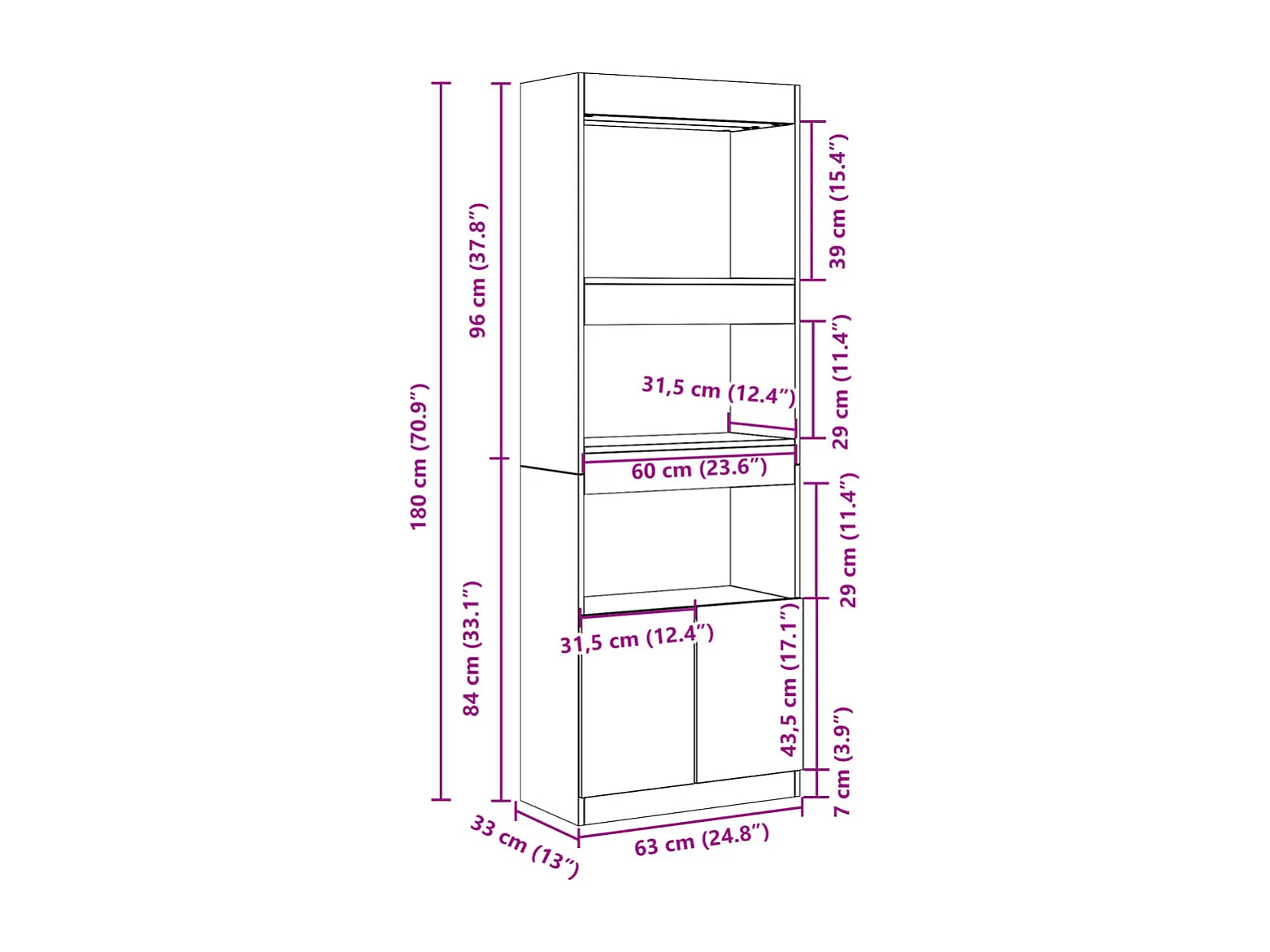 Buffet haut 63x33x180 cm chêne sonoma bois d'ingénierie