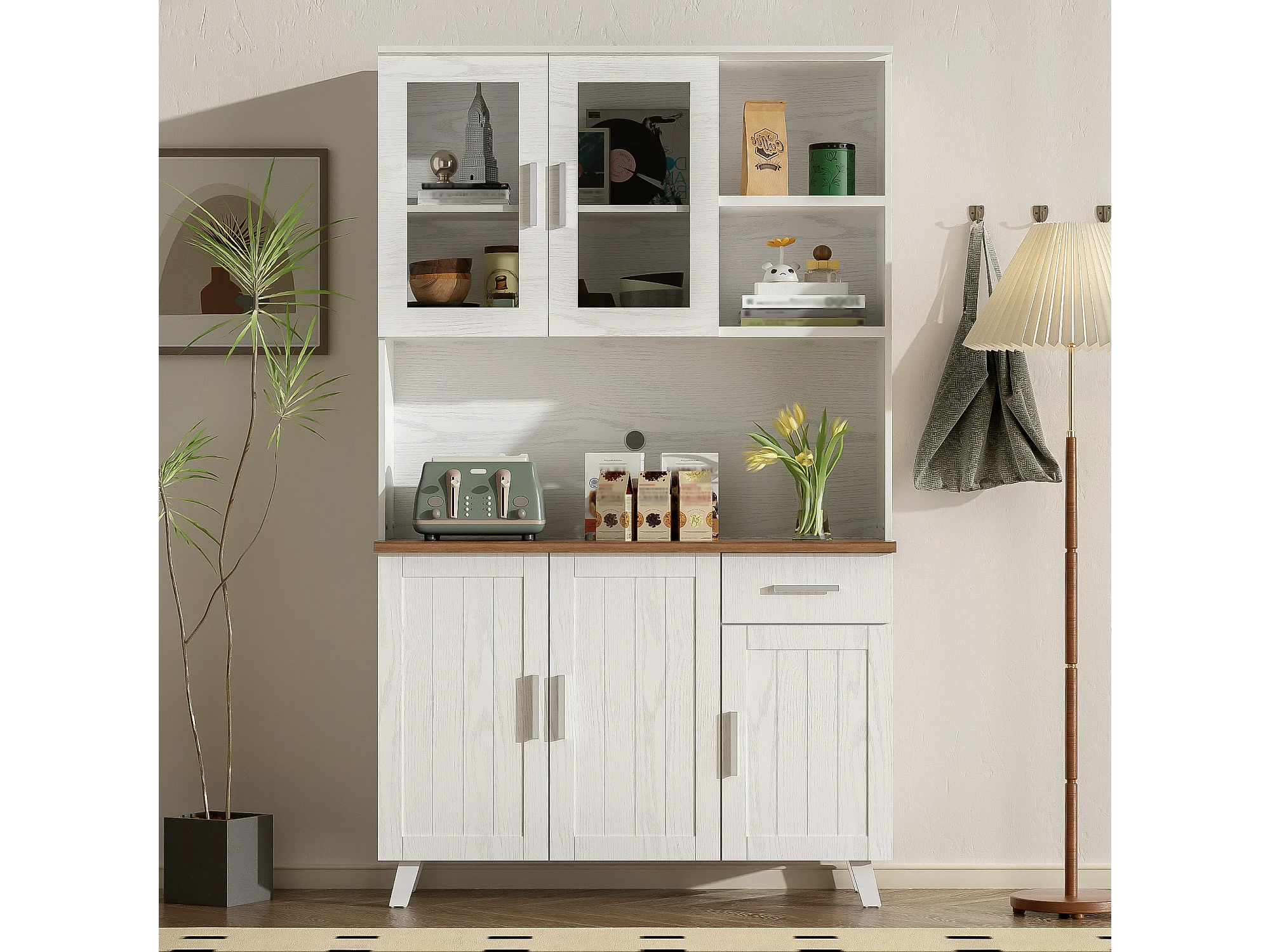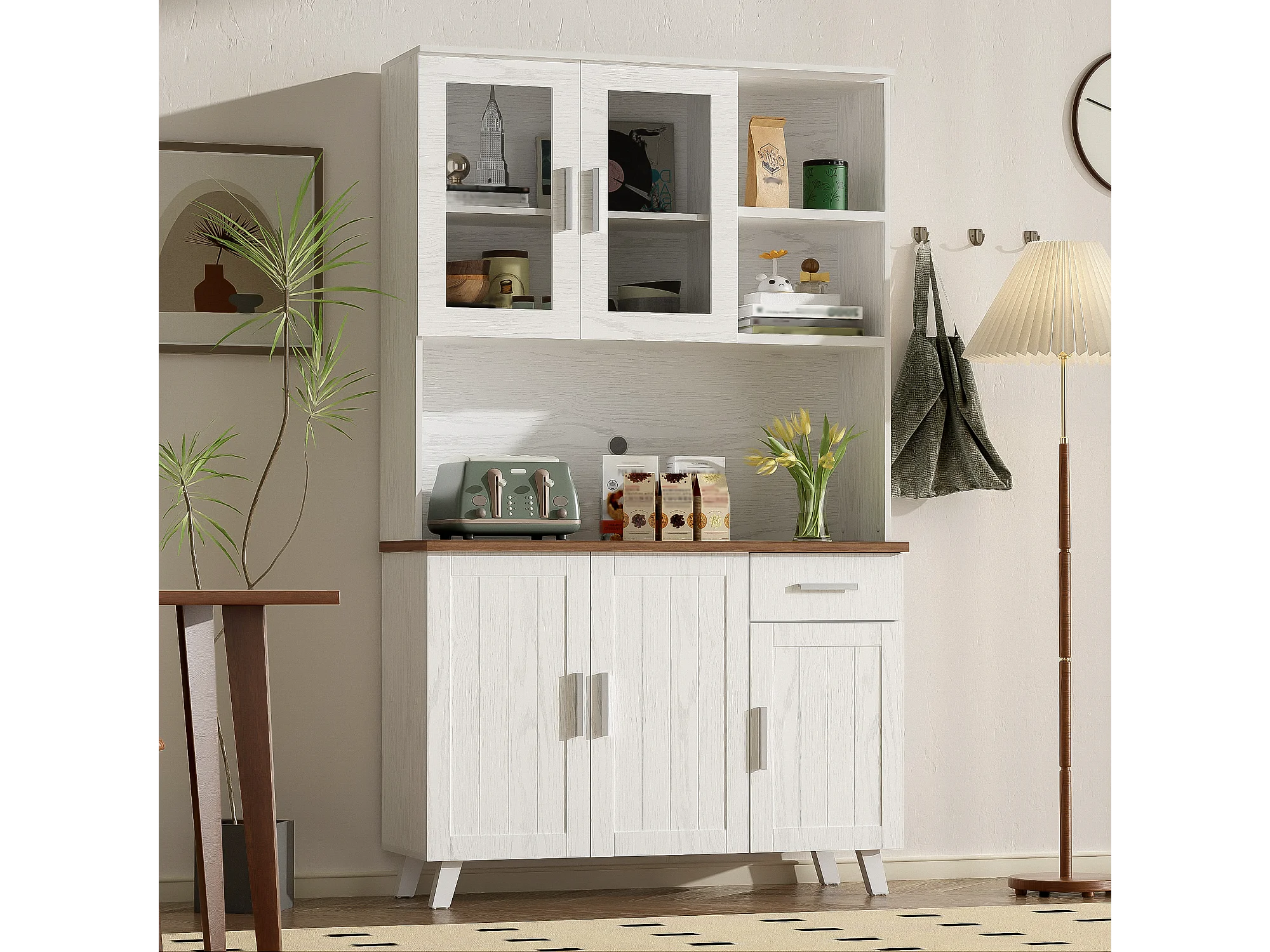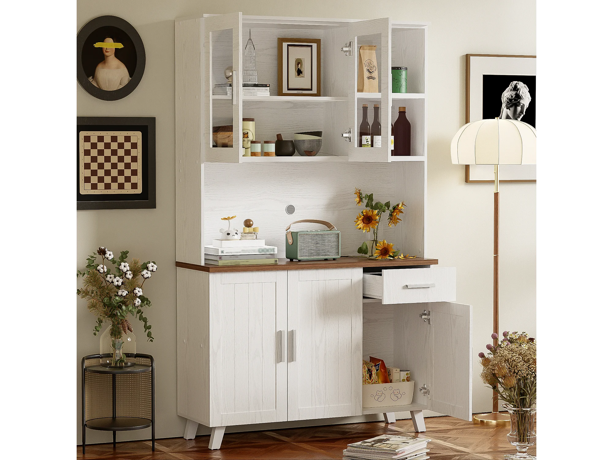 Buffet Haut à 5 Compartiments, Commode Bois Design Rustique, (114x40x190 cm)