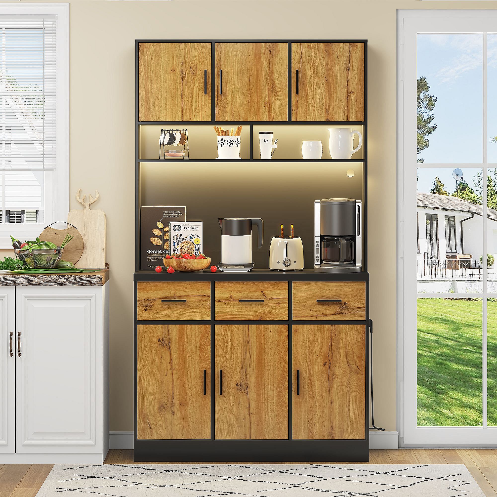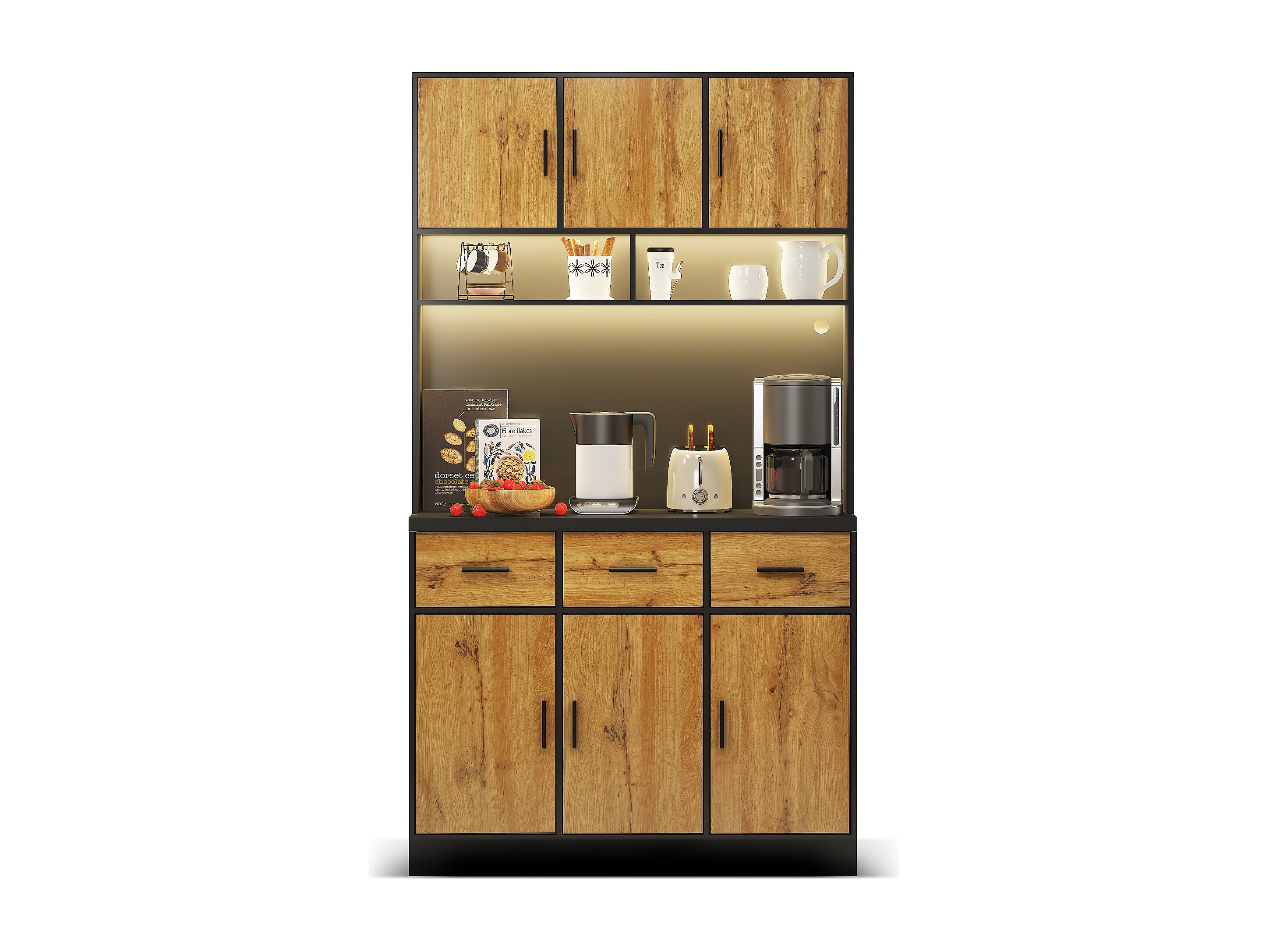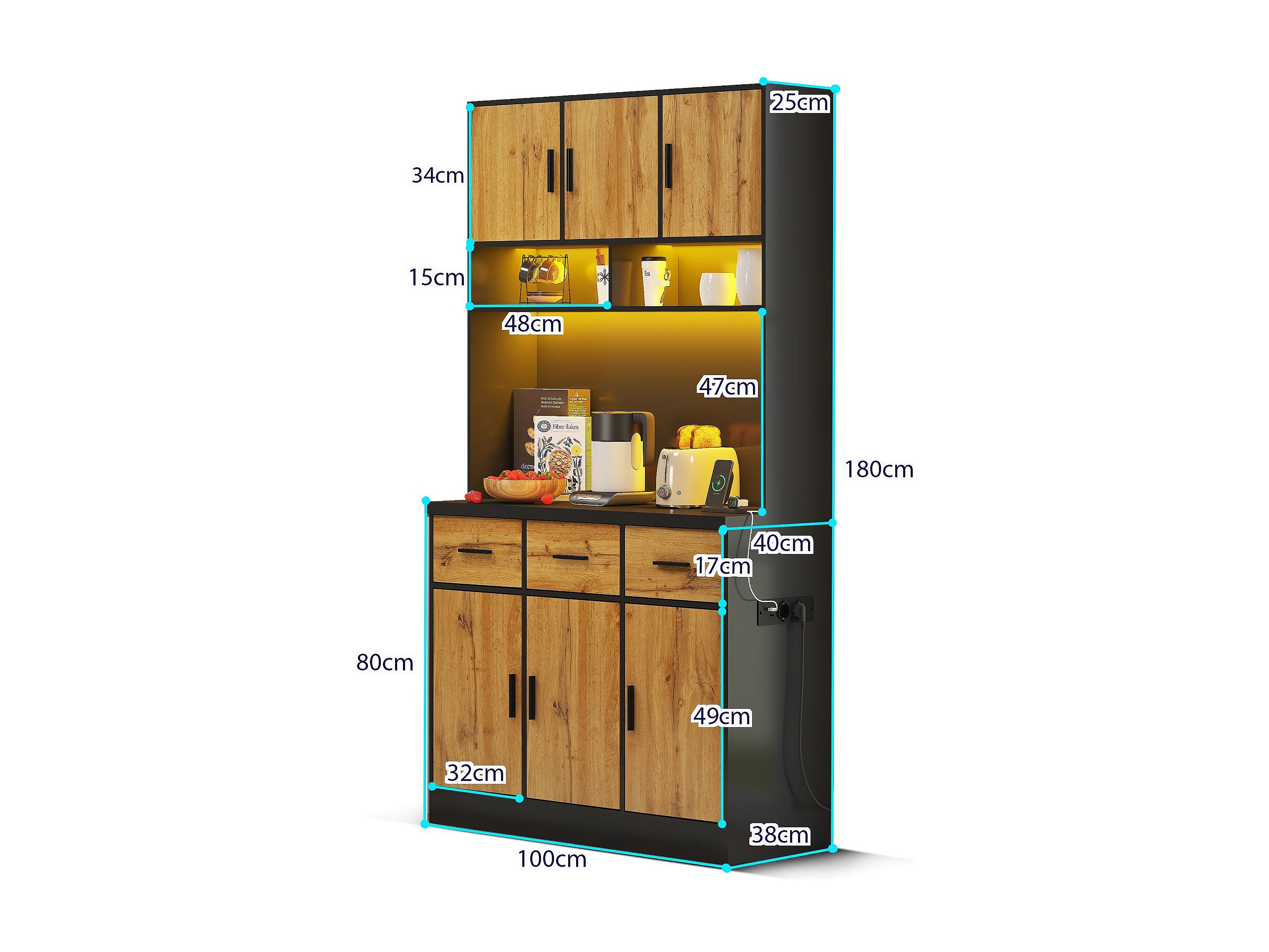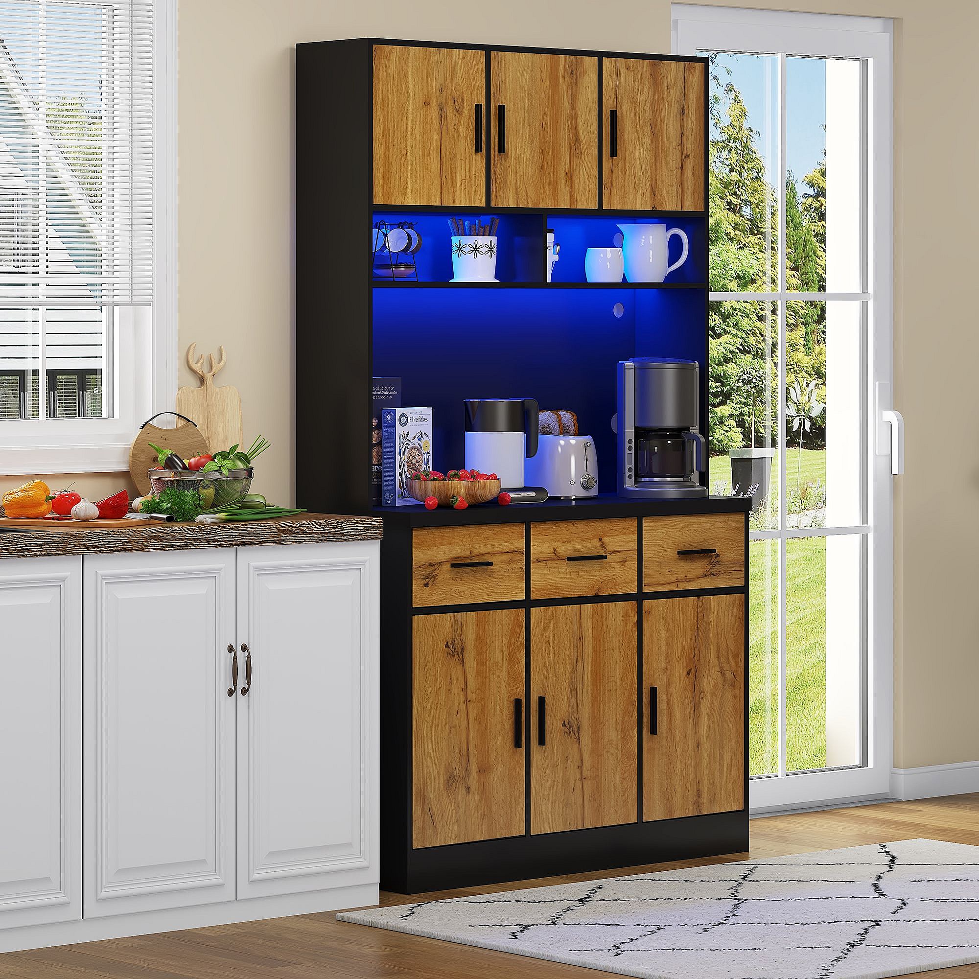 Buffet haut avec éclairage LED, 6 portes en bois et 3 tiroirs de rangement - noir