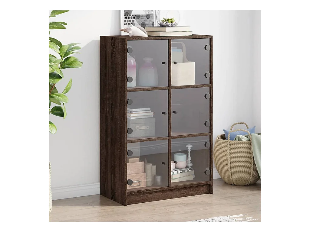 Buffet haut avec portes chêne fumé 68x37x142 cm bois ingénierie