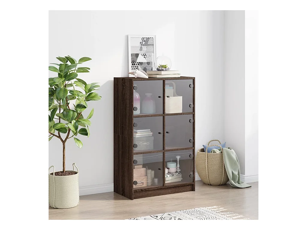 Buffet avec portes en verre chêne fumé 35x37x109 cm