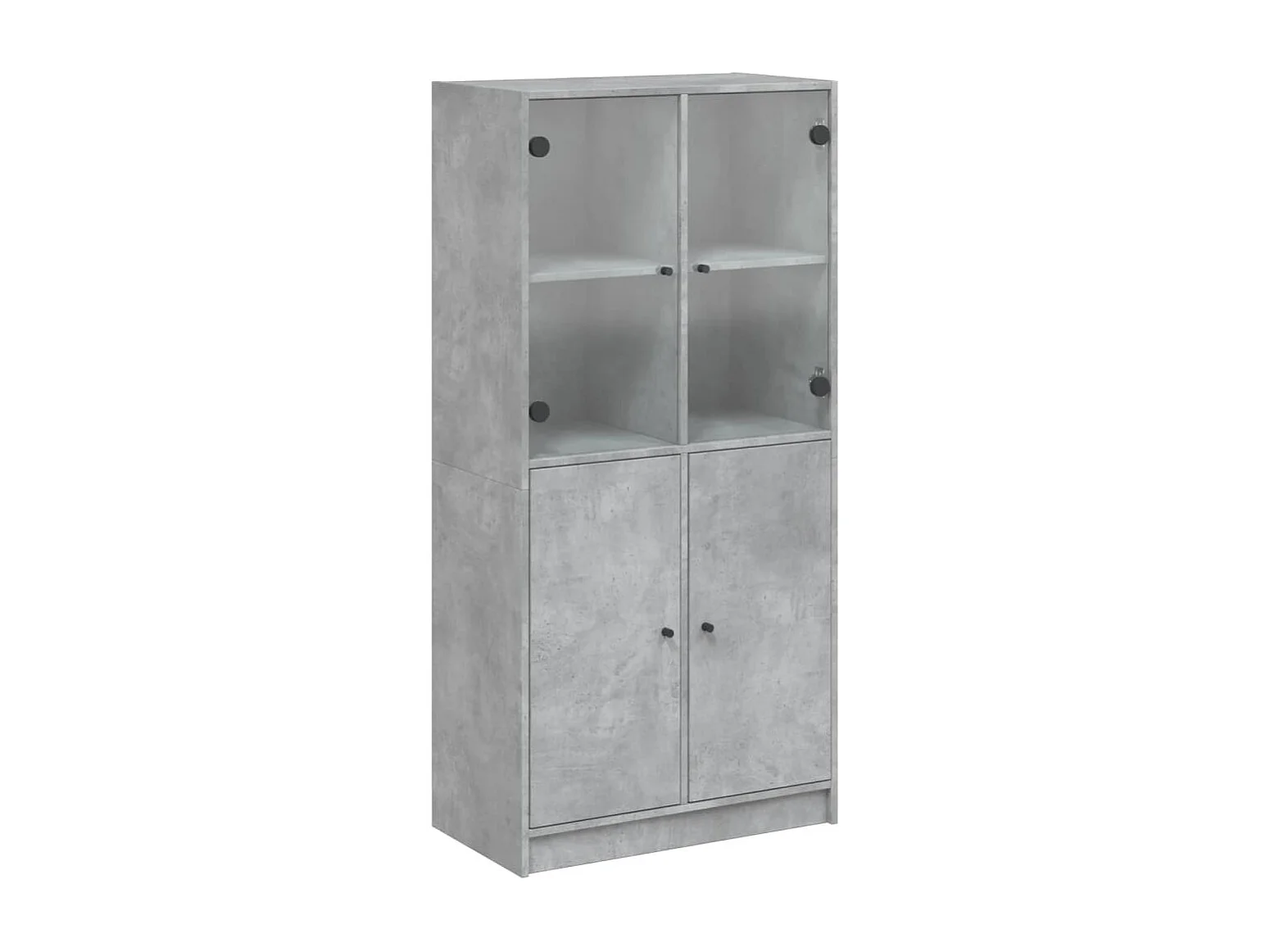 Buffet haut avec portes gris béton 68x37x142 cm bois ingénierie