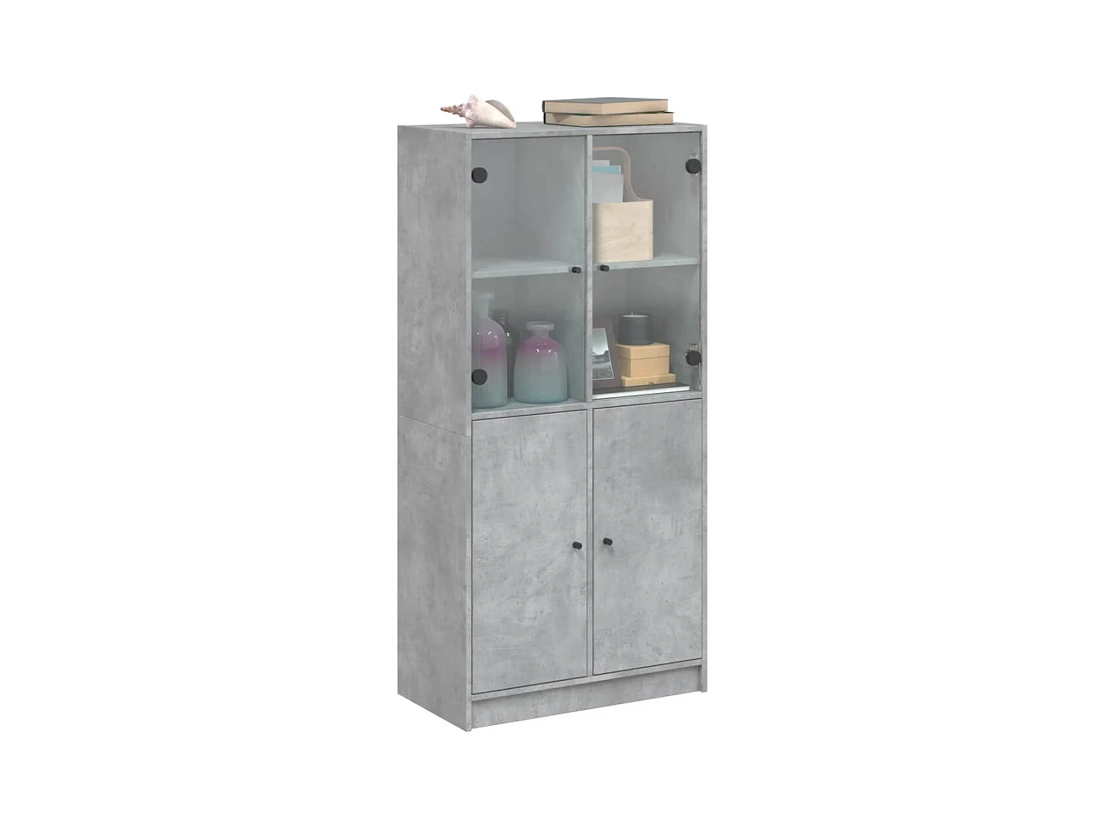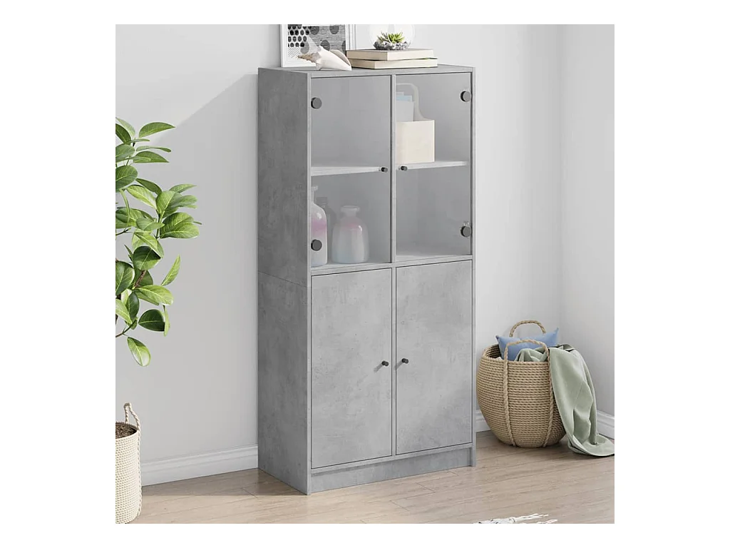 Buffet haut avec portes gris béton 68x37x142 cm bois ingénierie
