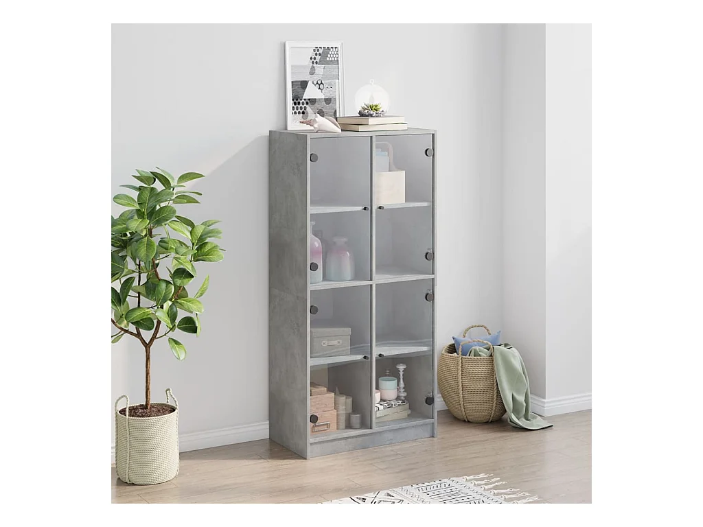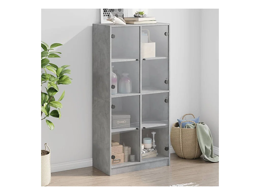 Buffet avec portes en verre gris béton 35x37x142 cm