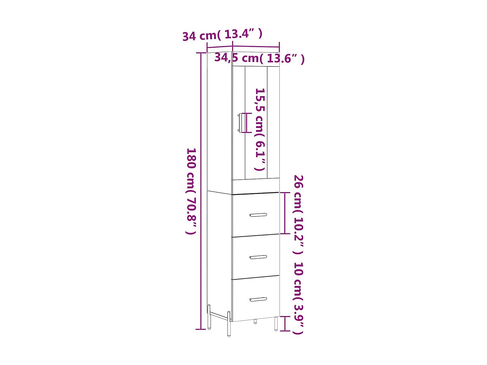 Buffet haut Blanc 34,5x34x180 cm Bois d'ingénierie