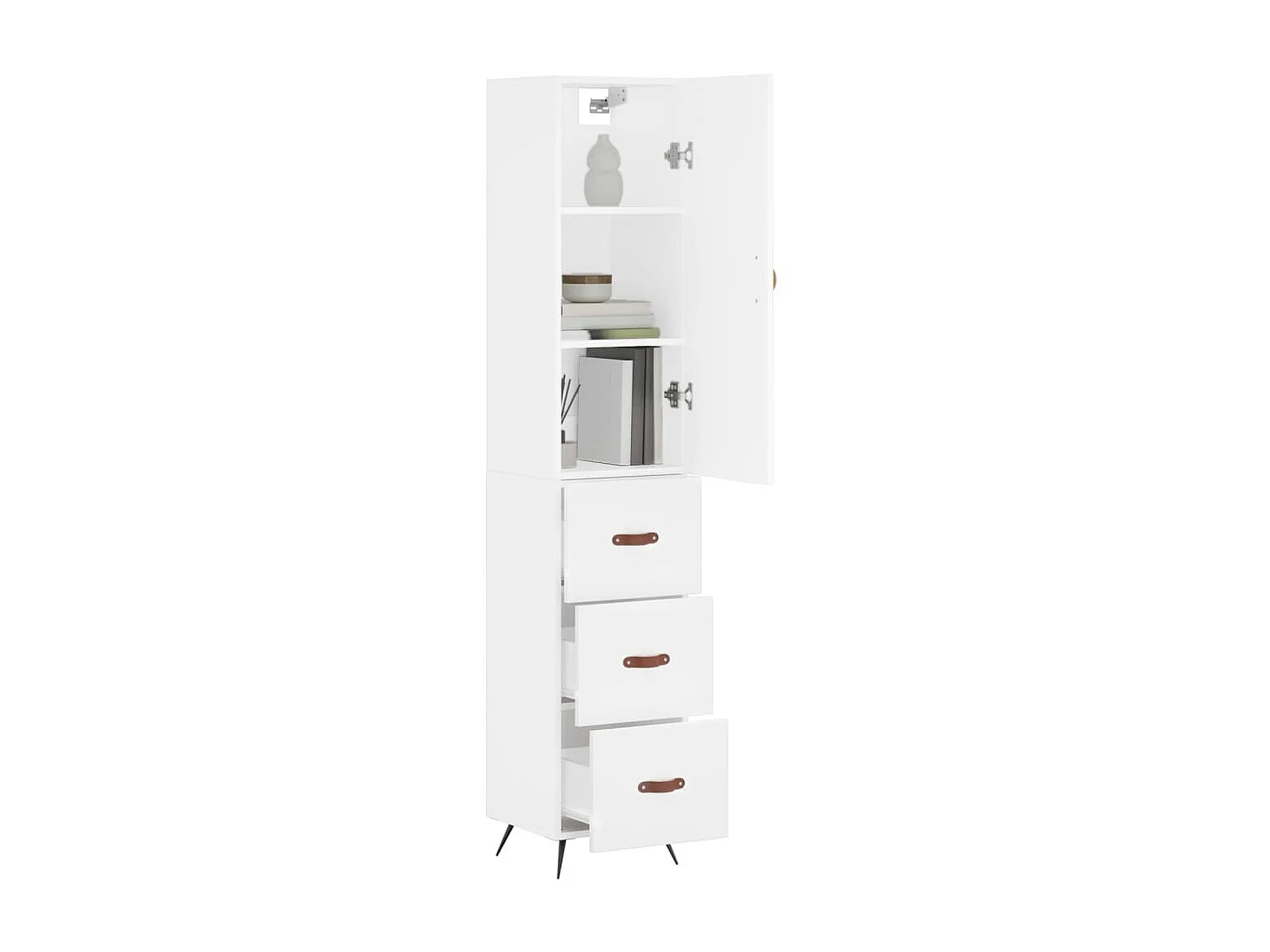 Buffet haut Blanc brillant 34,5x34x180 cm Bois d'ingénierie QWE86417
