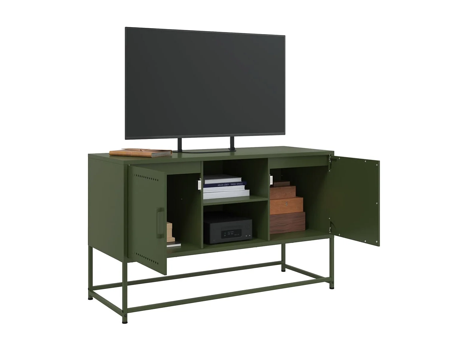 Buffet moderne 2 portes 110 cm en métal et verre écru