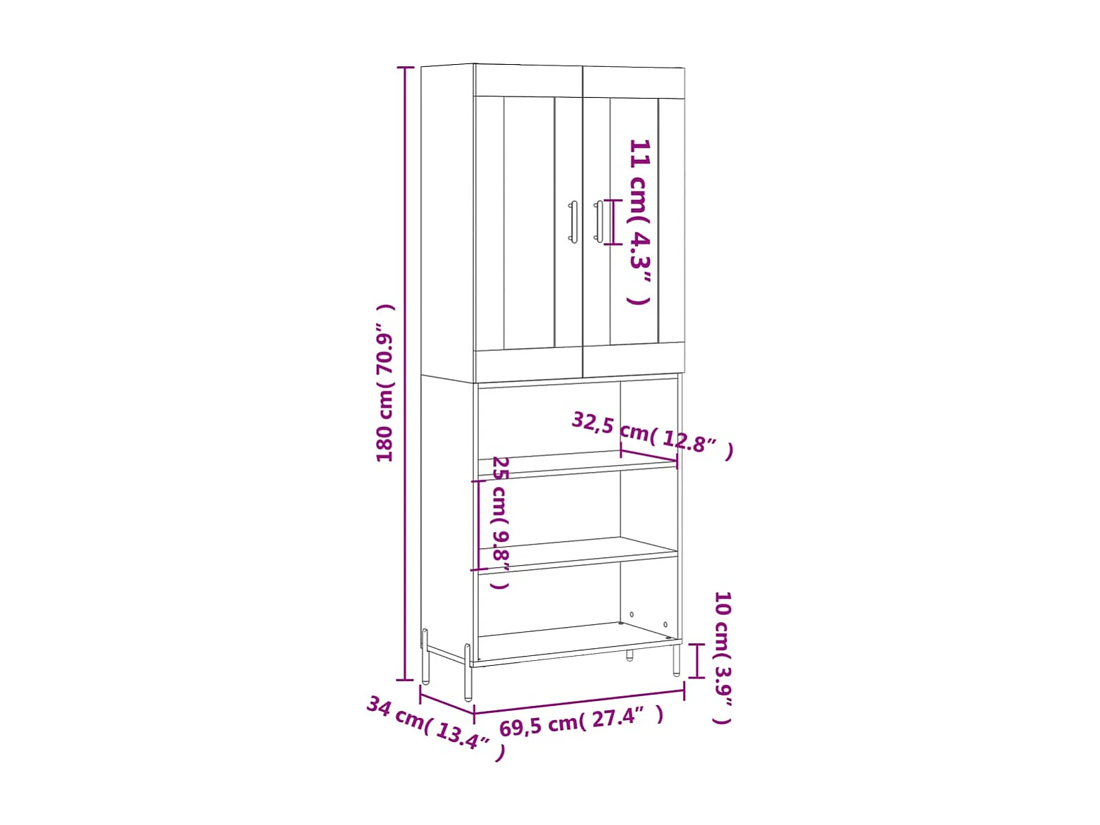 Buffet haut Blanc 69,5x34x180 cm Bois d'ingénierie