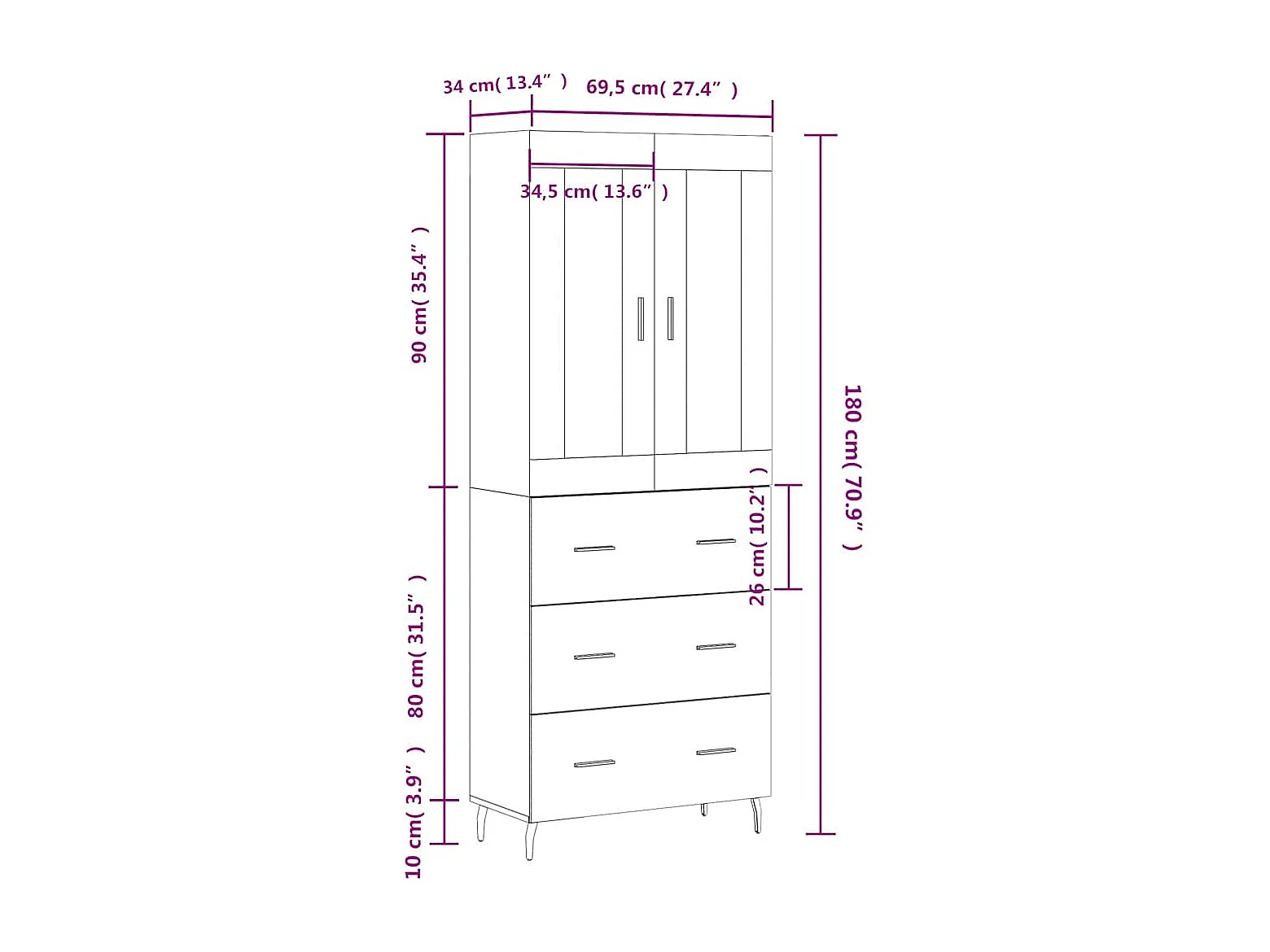 Buffet haut Blanc 69,5x34x180 cm Bois d'ingénierie