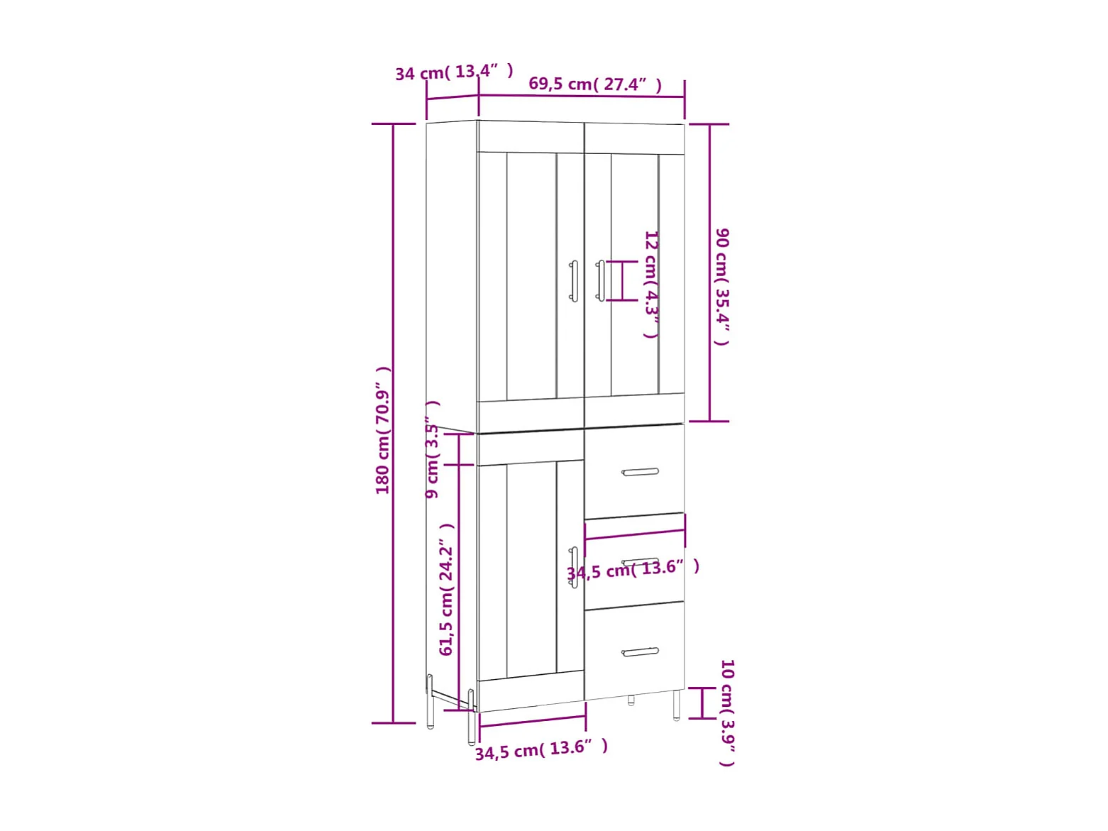 Buffet haut Blanc 69,5x34x180 cm Bois d'ingénierie