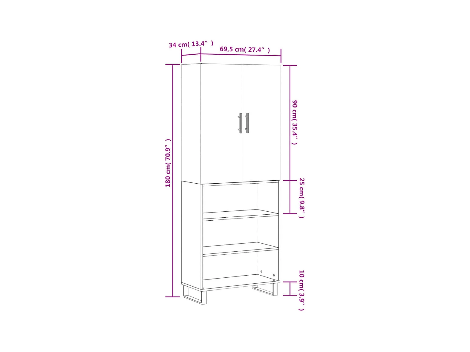 Buffet haut Blanc 69,5x34x180 cm Bois d'ingénierie