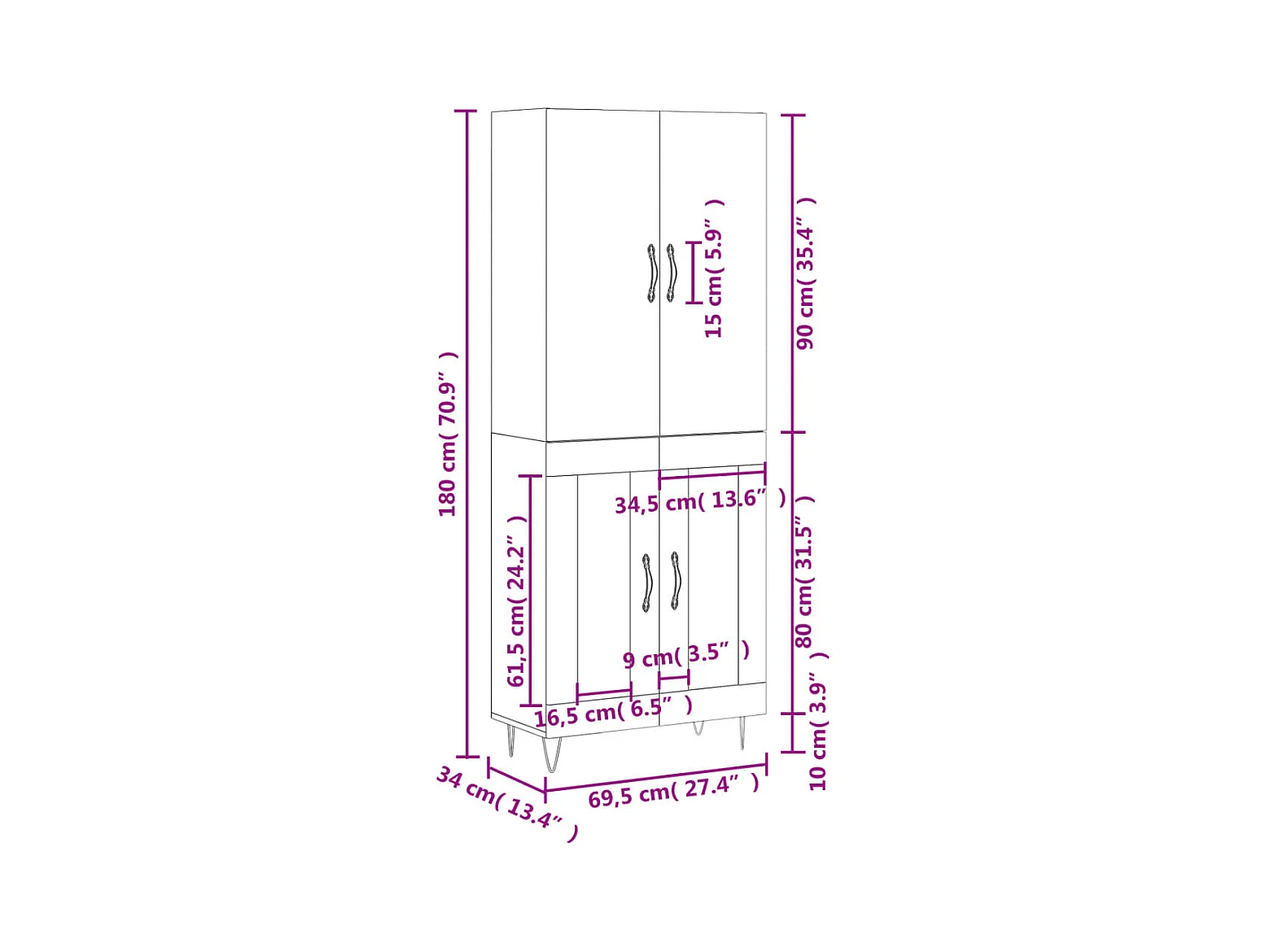 Buffet haut Blanc 69,5x34x180 cm Bois d'ingénierie
