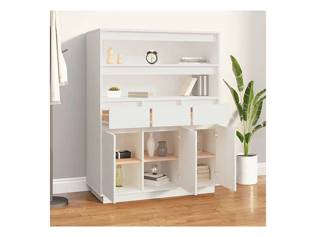 Buffet haut Blanc 89x40x116,5 cm Bois massif de pin