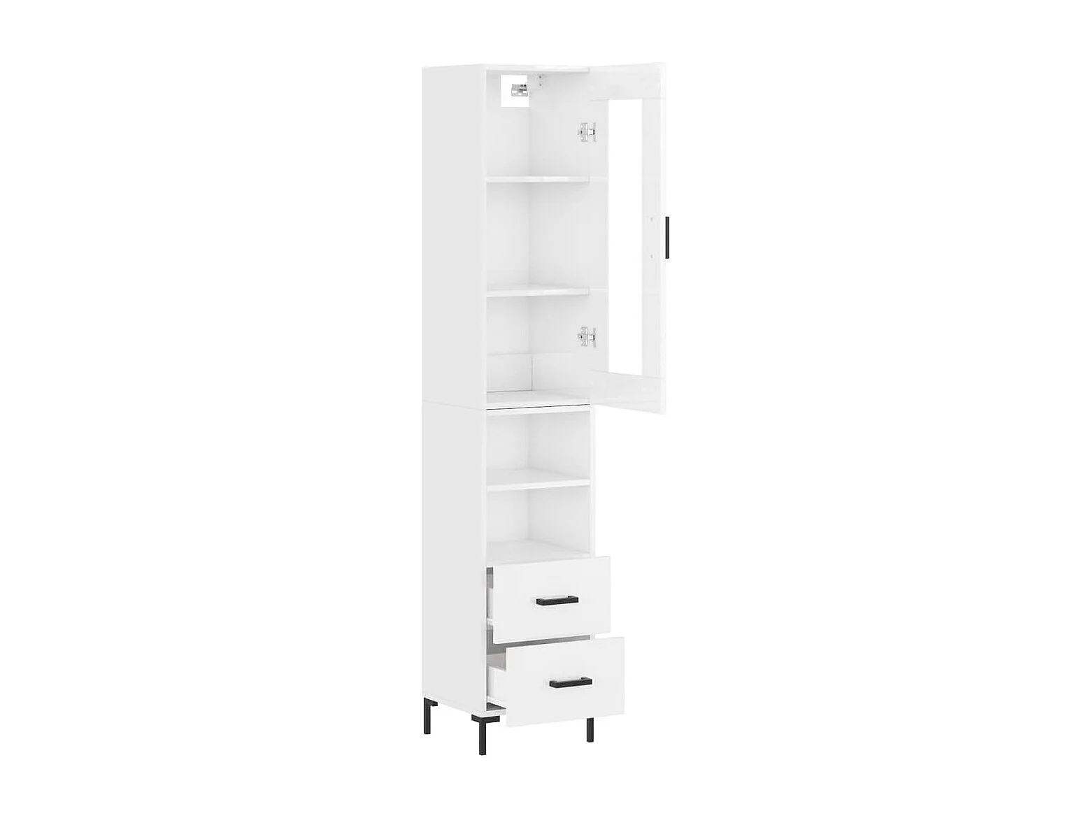 Buffet haut Blanc brillant 34,5x34x180 cm Bois d'ingénierie